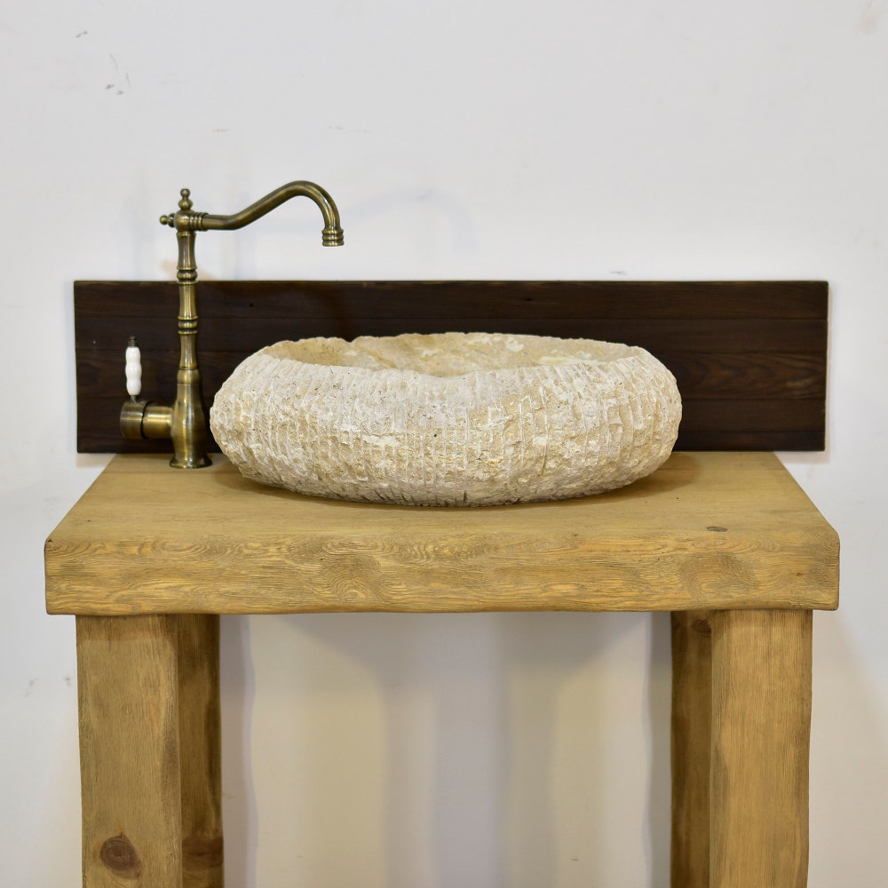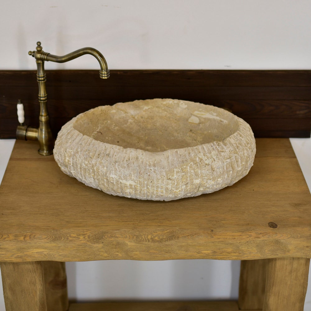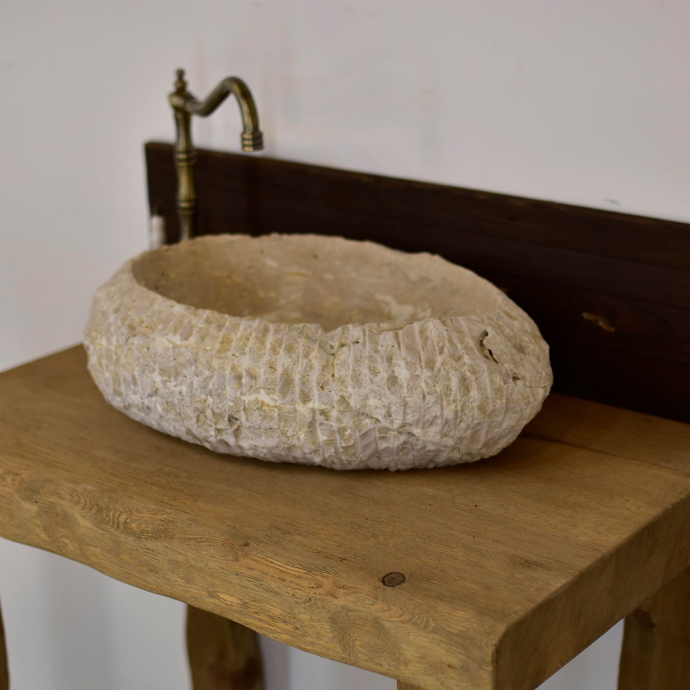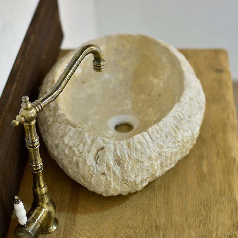 Enjoy the privilege of owning this unique travertine marble bathroom sink.