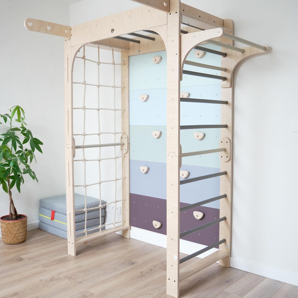 Mark VI Gymnastics Playset: Indoor Climbing Frame with Monkey Bars, Swedish Ladder & Pikler Triangle