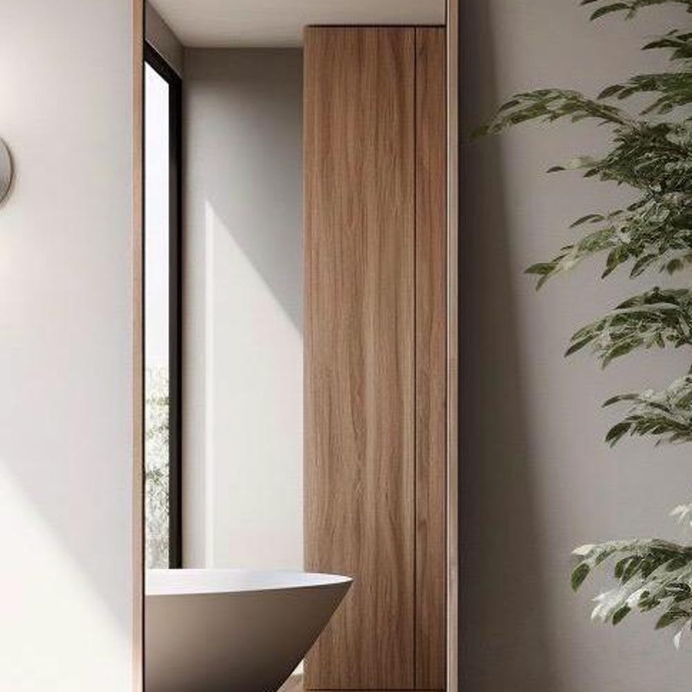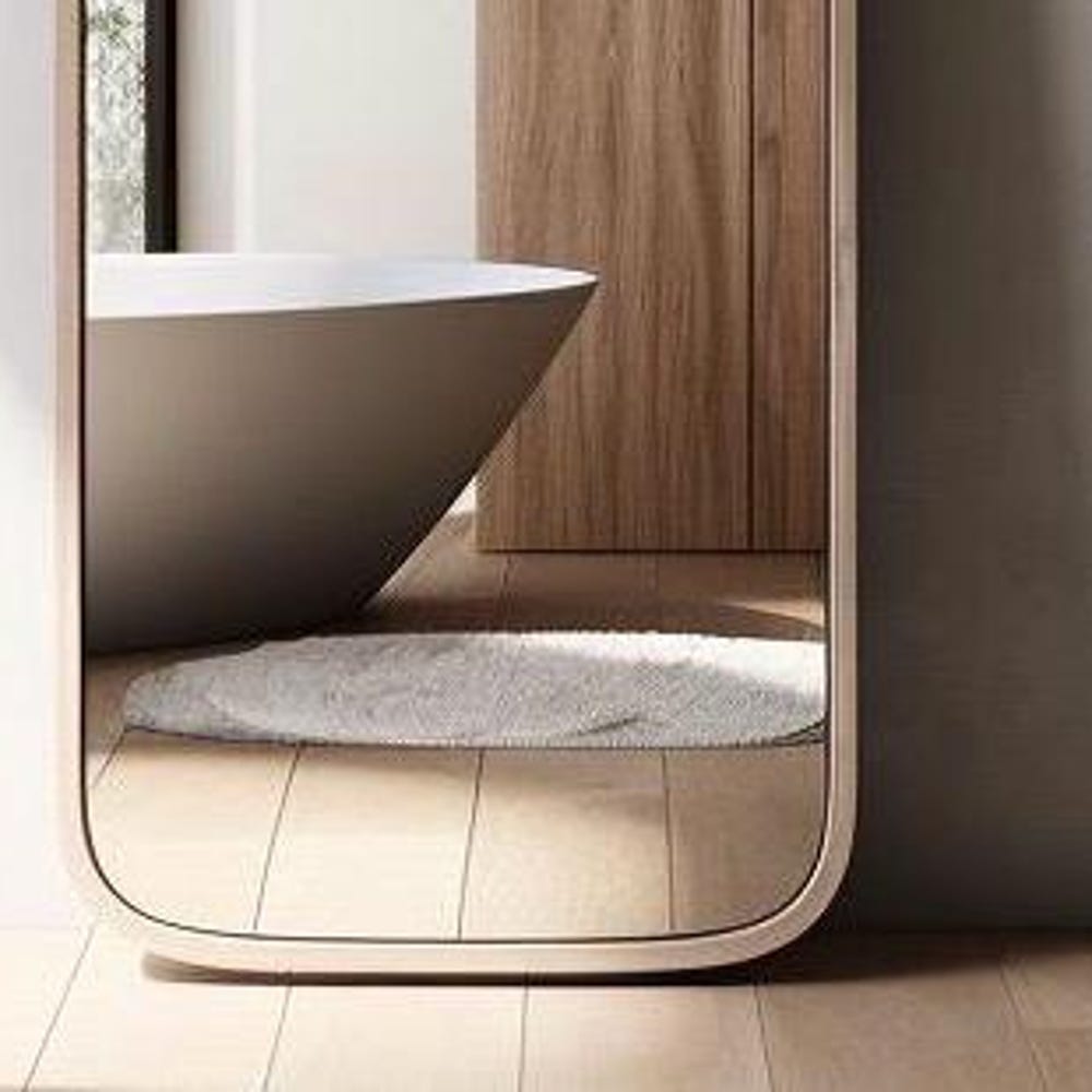 MDF Wooden Walnut Veneer Frame Long Mirror, Asymmetrical Mirror, Irregular Mirror, Bathroom Mirror, Vanity Mirror, Home Decor Mirror