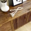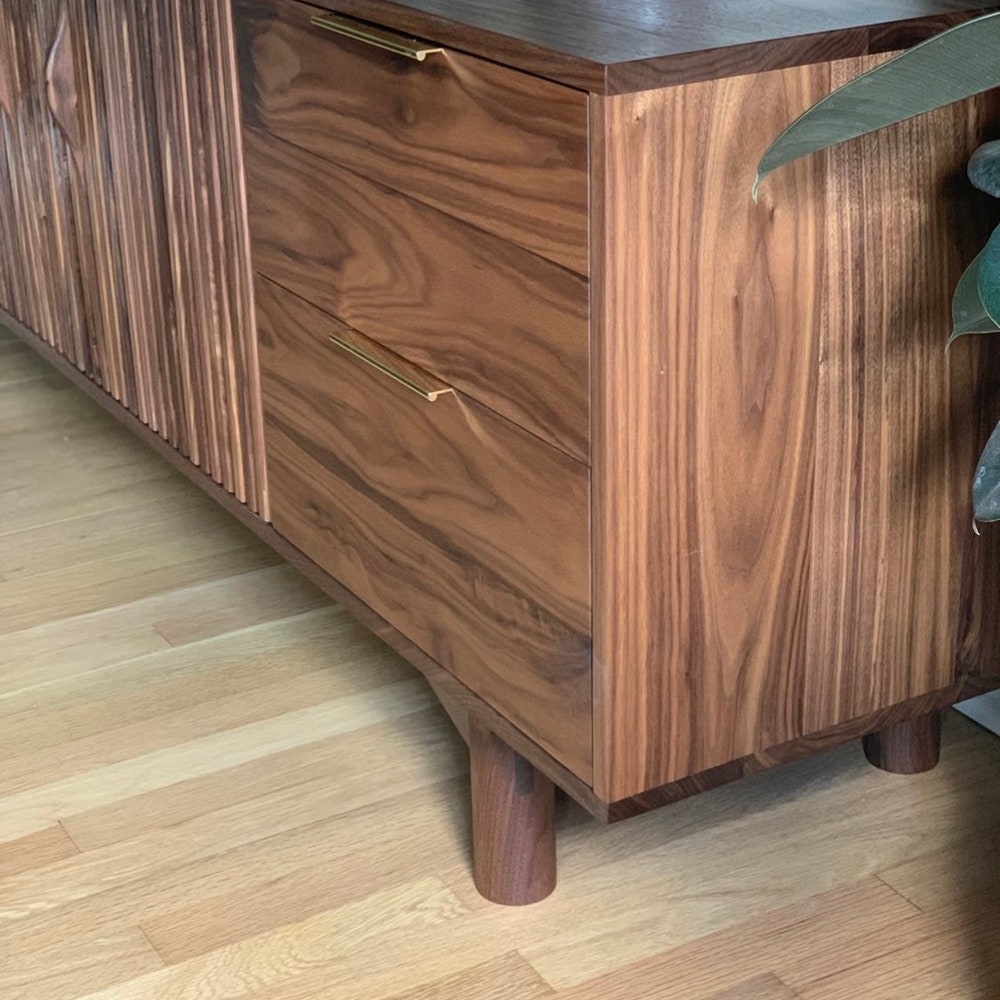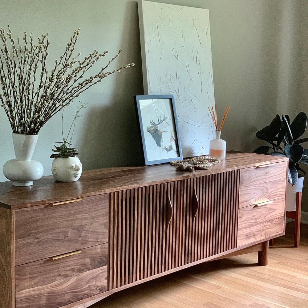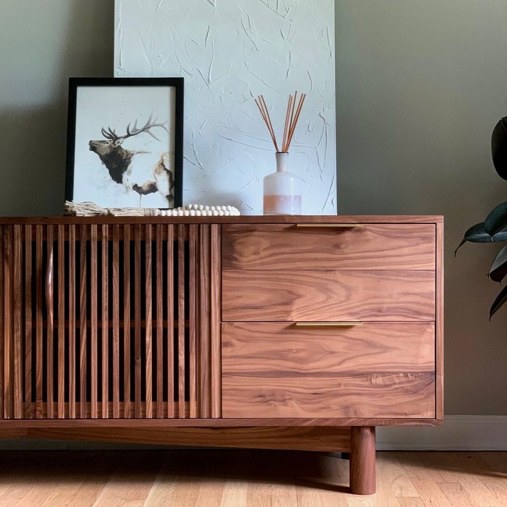 Gorgeous mid century media unit! Features four soft close drawers and one adjustable shelf behind the two louver doors. Ideal for hiding your cable boxes while also allowing for remote control penetration. A hole in the back panel for wire management can also be added. All solid wood construction. 75”W x 26”T x 17”D Shown […]