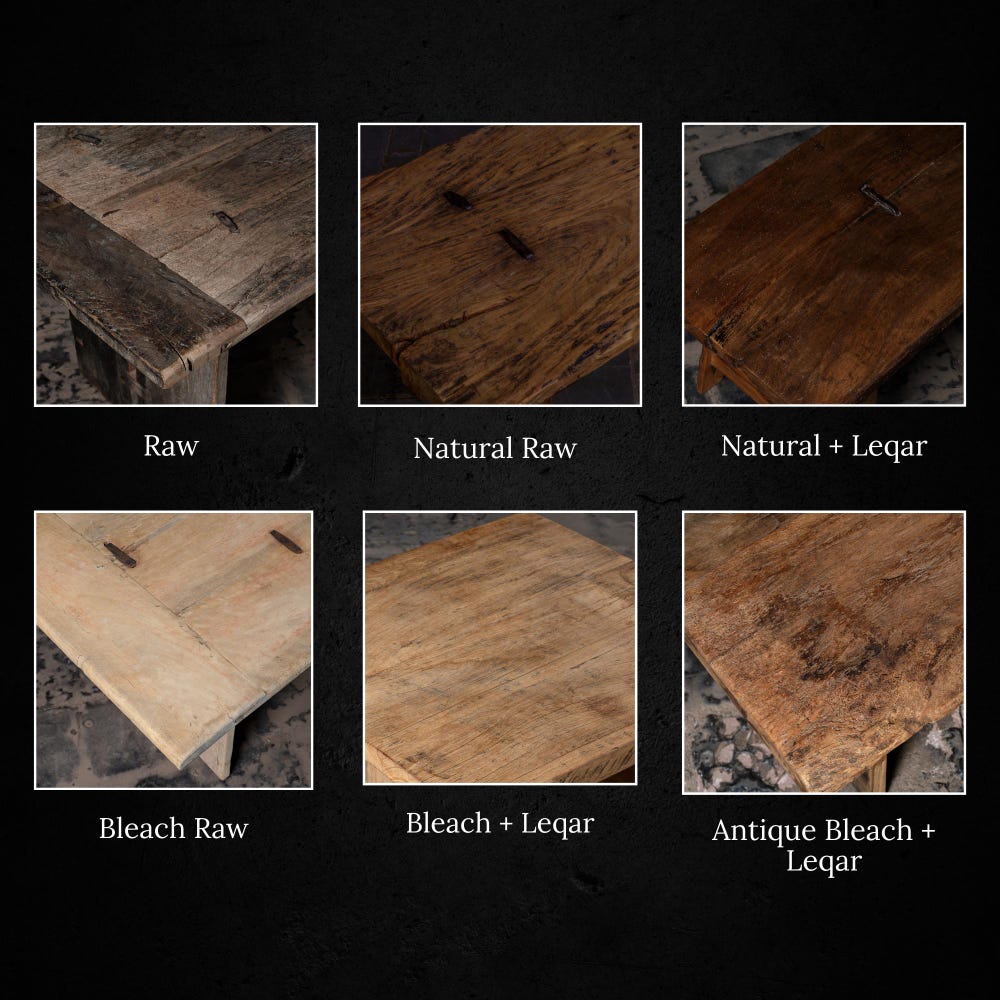 | Finishes | Raw, Natural Raw, Natural + Leqar, Bleach Raw, Bleach + Leqar, Antique Bleach+Leqar |