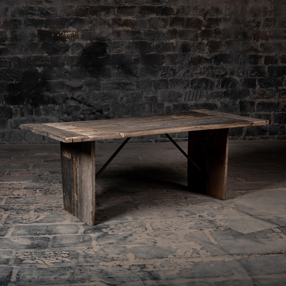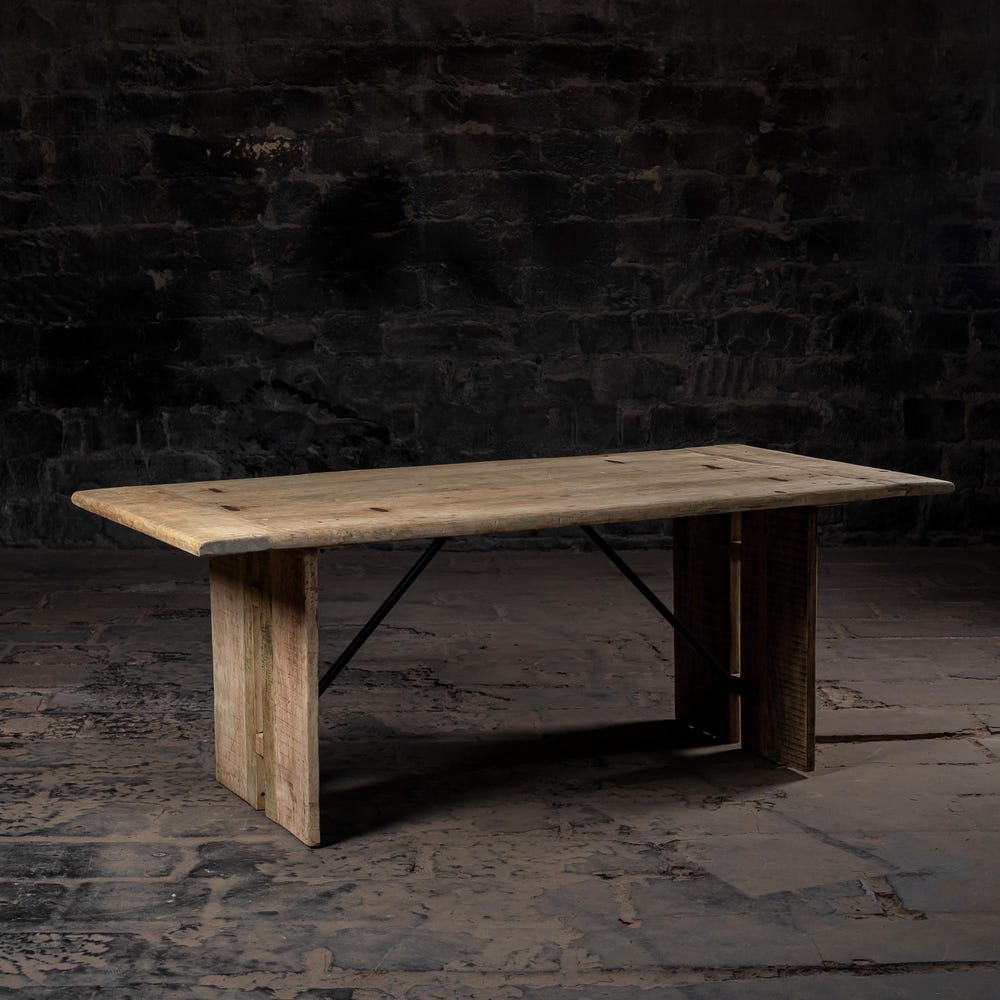 Melodious Old Rustic Finish Reclaimed Wooden Dining Table | Southern Old Wood Natural Raw Finish Dining Table | Vintage Garden Dining Table