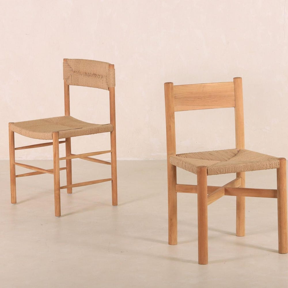 Introducing our homage to the timeless designs of Charlotte Perriand – the Meribel Chair and Dordogne Chair, meticulously crafted in solid teak wood and intricately woven paper cord.