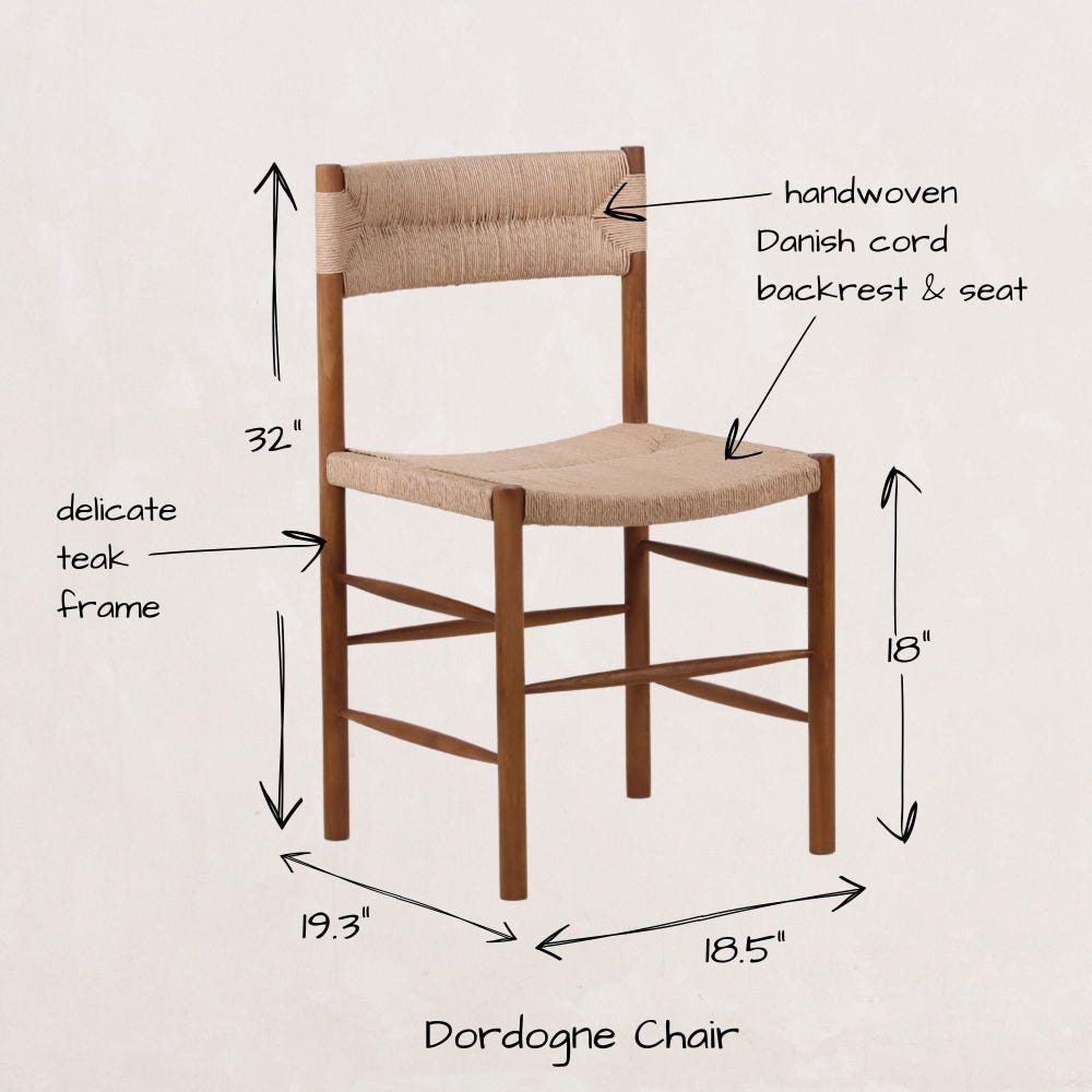 The Meribel Chair features a sleek and ergonomic design, with its gently curved backrest and sturdy teak wood frame providing both comfort and style. Meanwhile, the Dordogne Chair showcases a refined silhouette and subtle detailing, highlighting the beauty of solid teak wood and the artistry of woven paper cord.