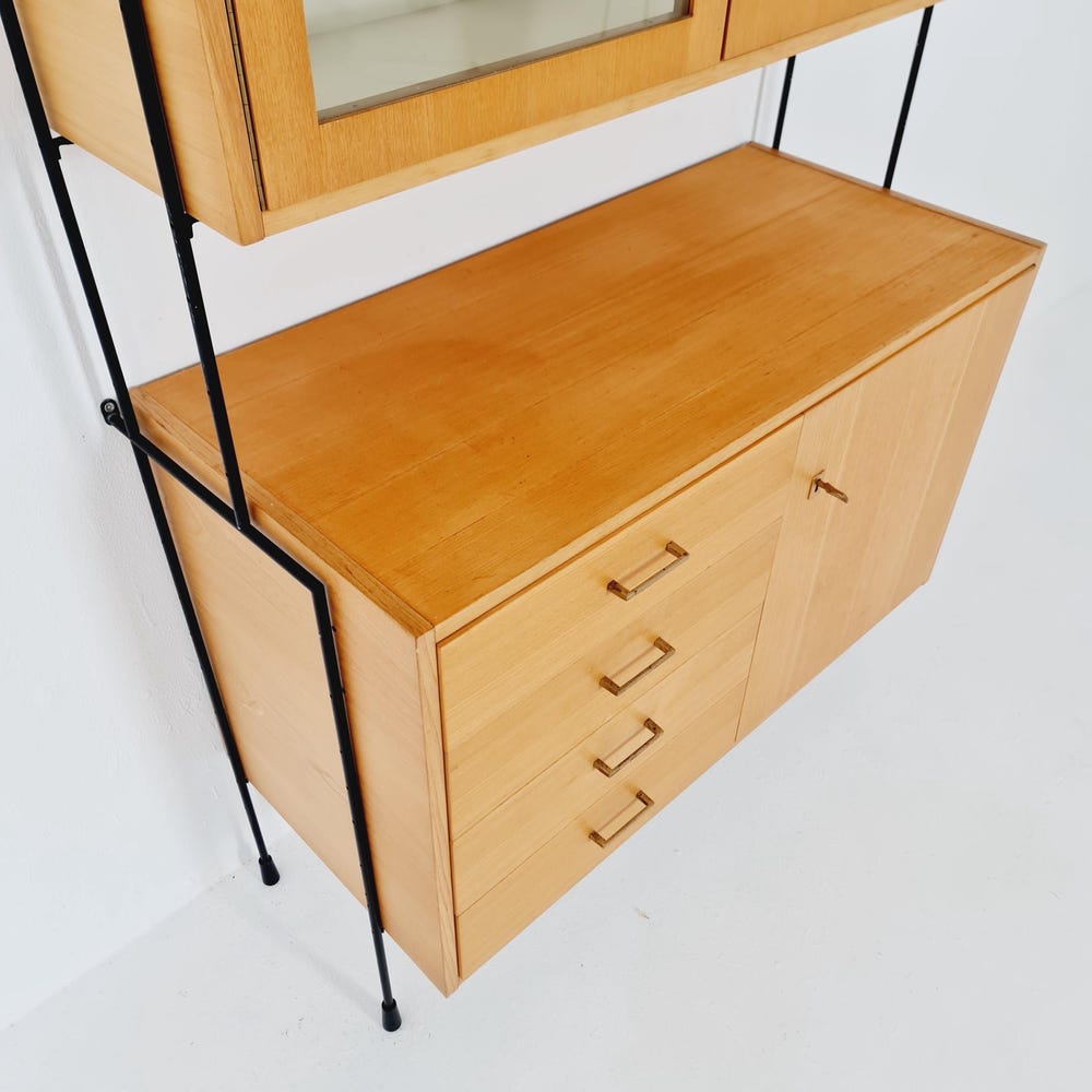 Mid century Ash wall shelving unit by Hilker for Omnia, Germany, 1960s
