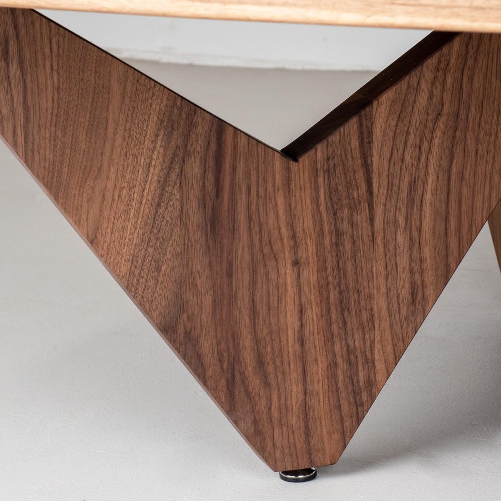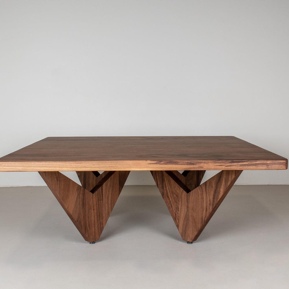 This mid century coffee table features custom V shaped legs that give the legs a delicate appearance. The large square shape is a great focal point for a living room. We build every table to order so there are many ways to make this coffee table perfect for you.