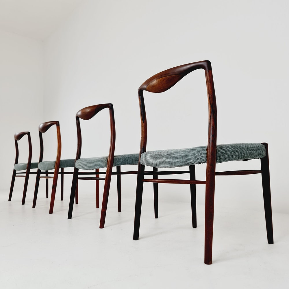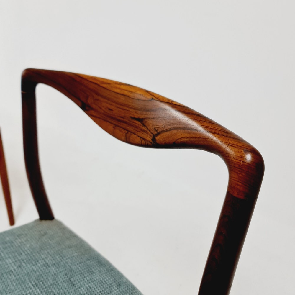 The chair frames are made from solid Rosewood, in good vintage condition, however, as with all vintage items some minor wear marks should be expected.