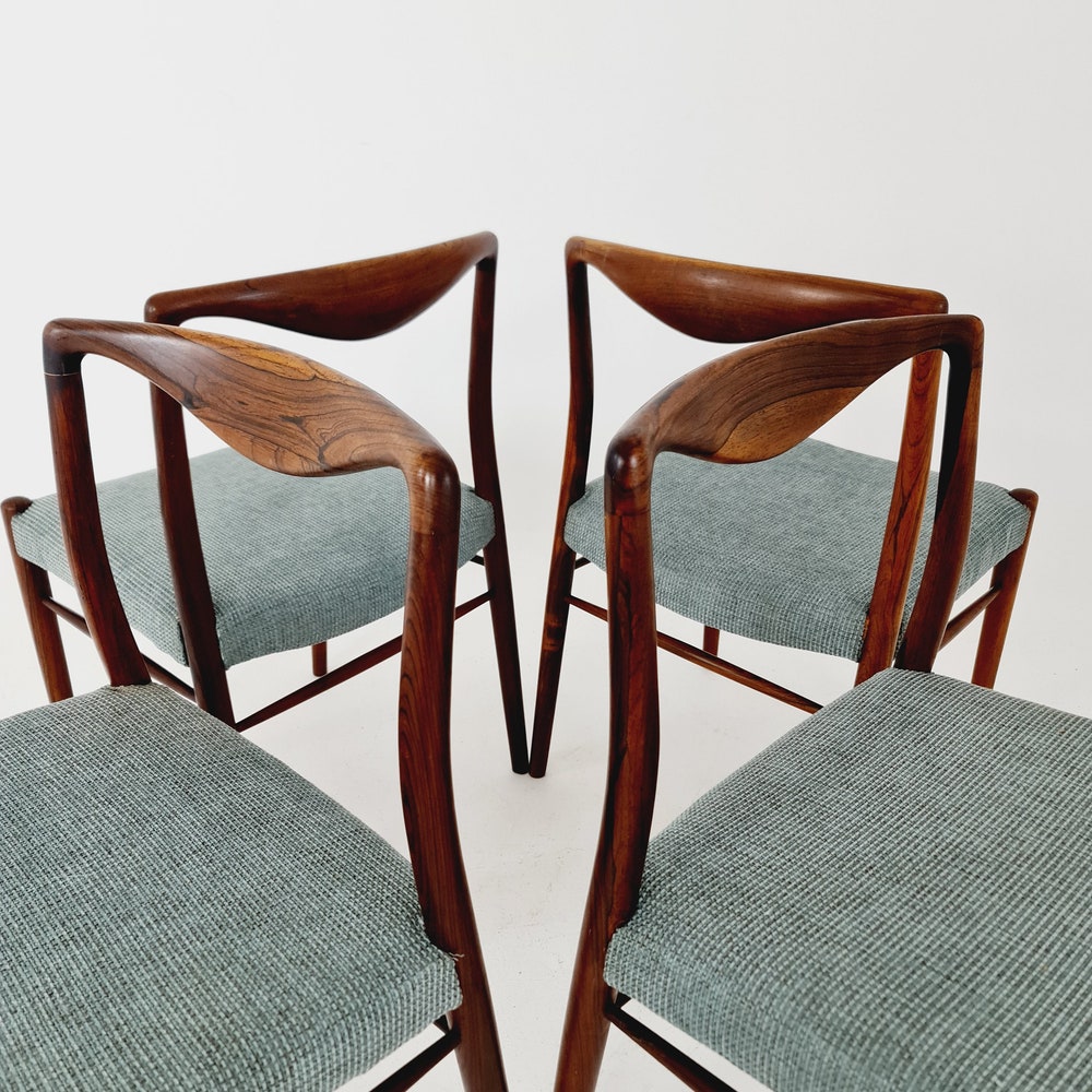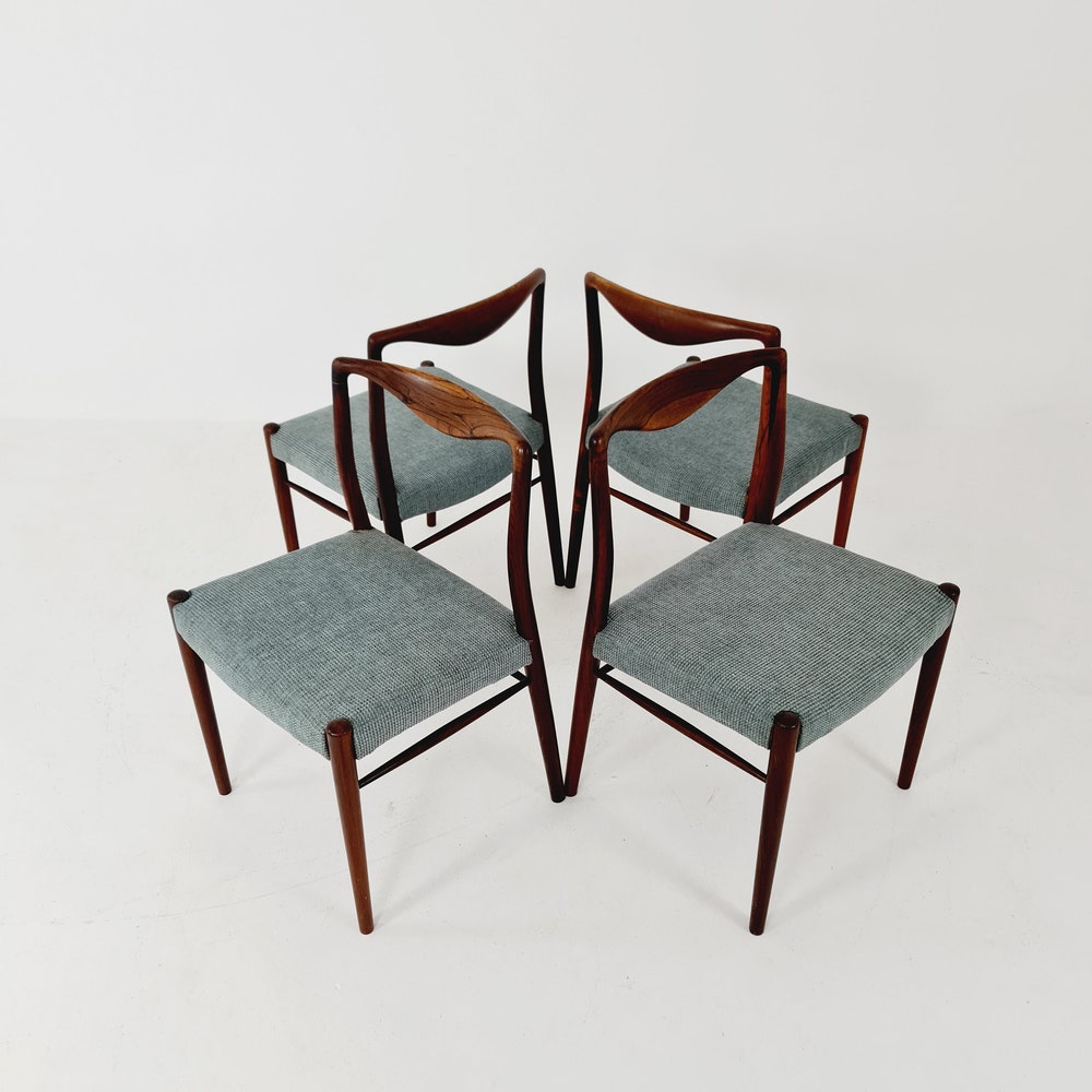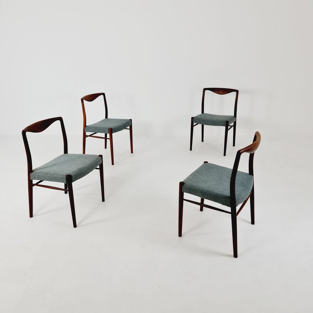 Mid Century Danish Fabric chair by Kai Lyngfeldt Larse, 19n60s Set of 4 The chair frames are made from solid Rosewood, in good vintage condition, however, as with all vintage items some minor wear marks should be expected. Designer / Manufacturer:Kai Lyngfeldt LarseWorldwide shipping available. Dimensions: Width: 46 cmHeight: 75 cmSeat Depth: 43 cmSeat Height: […]