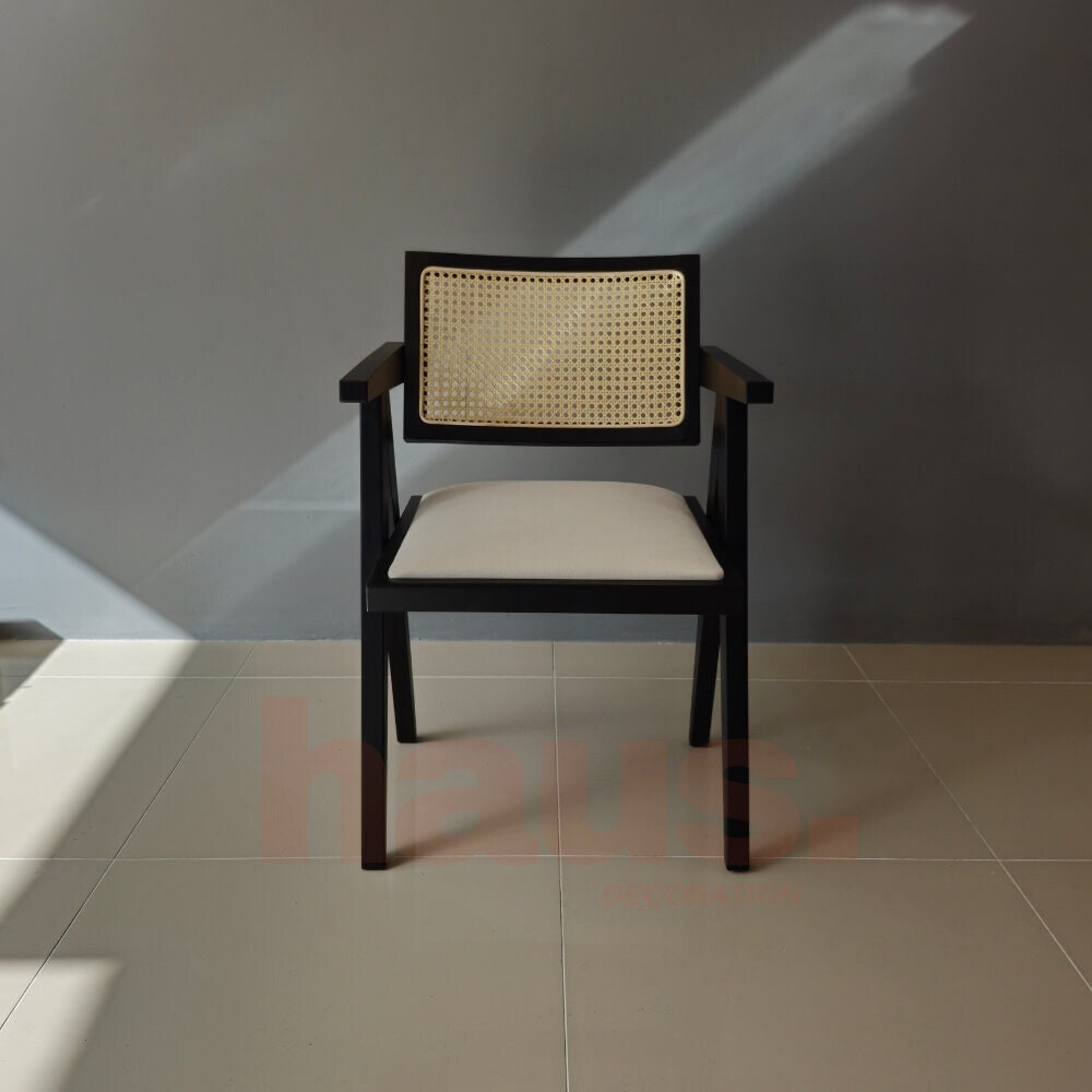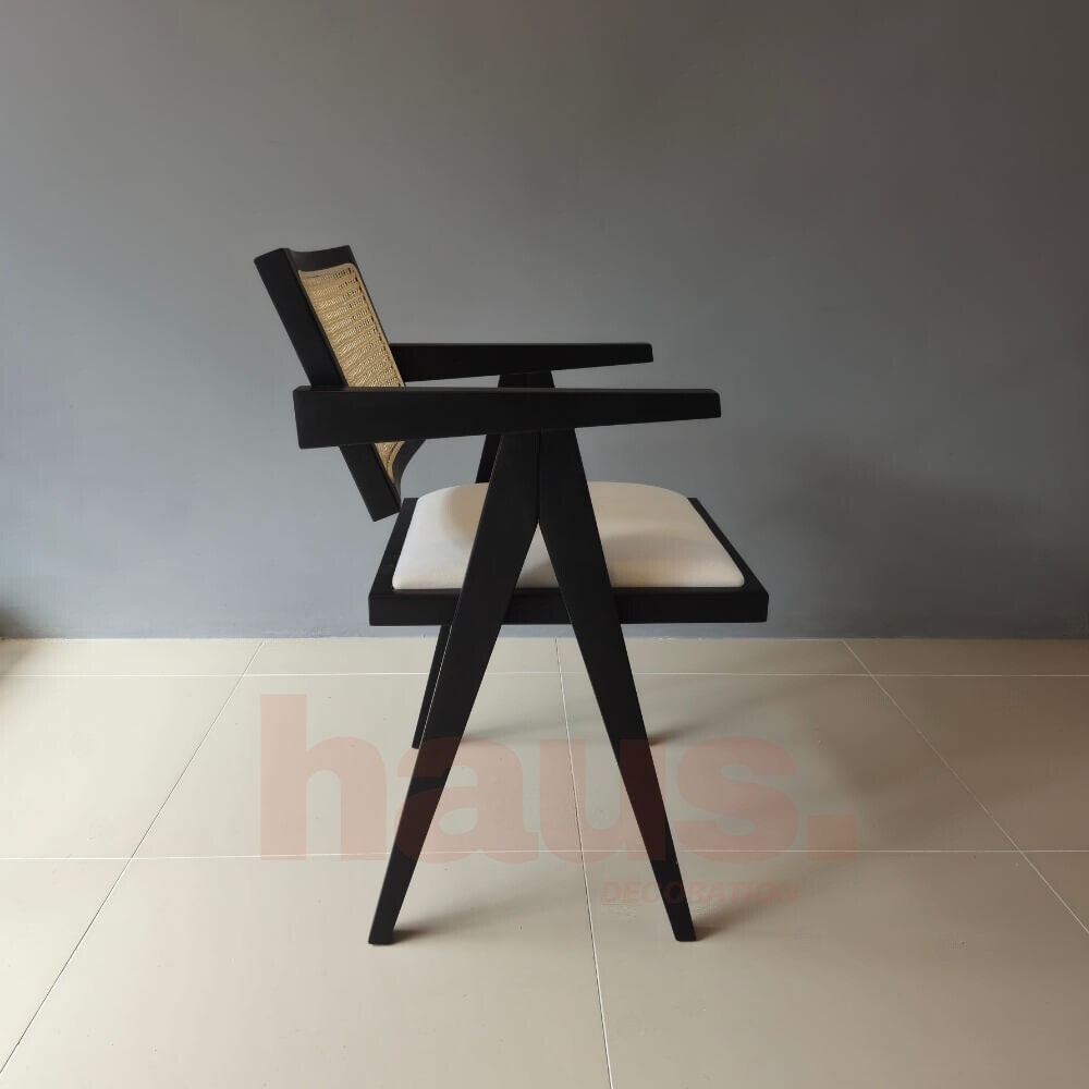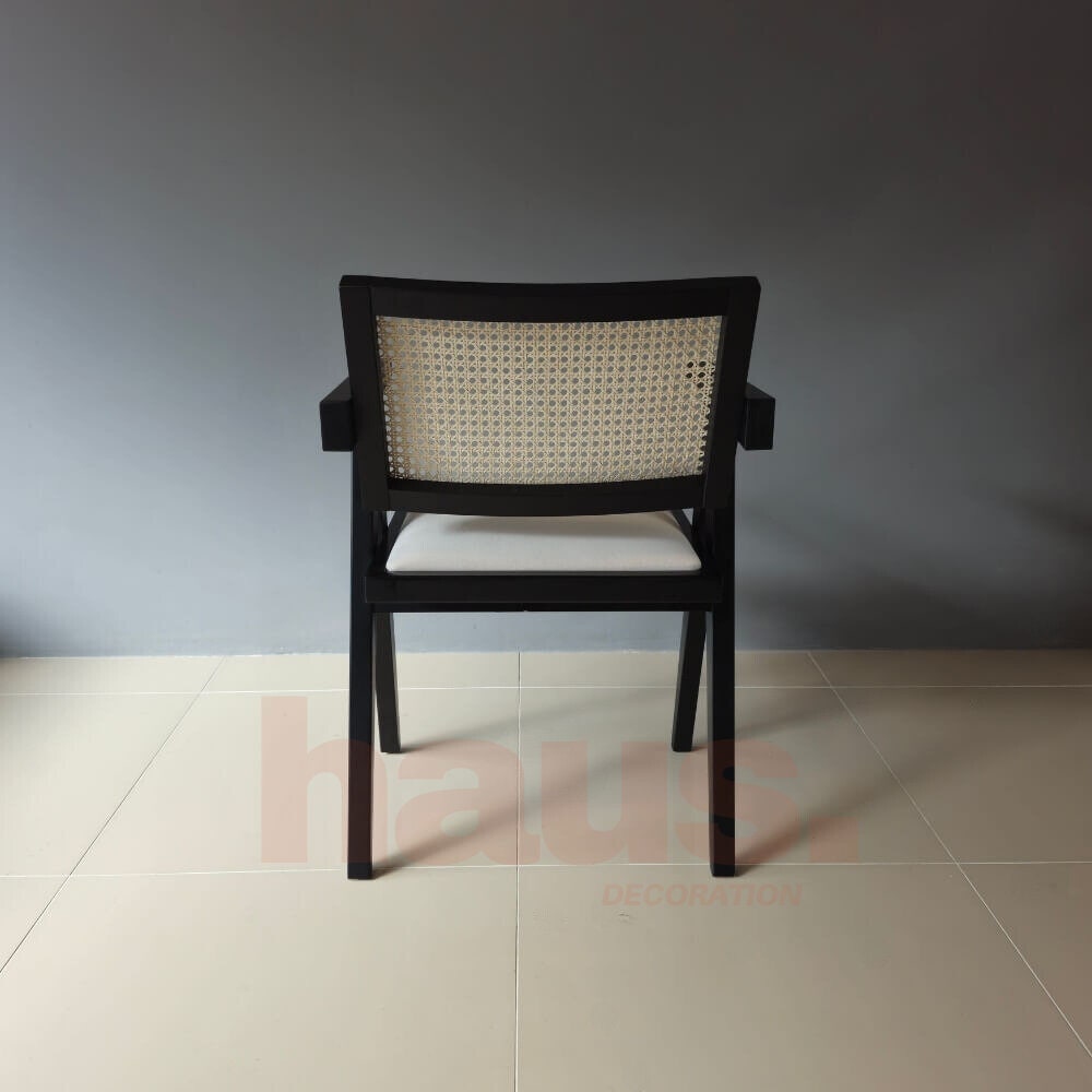 Introducing our handmade wooden chair, a perfect blend of traditional craftsmanship and modern elegance. With its sleek wooden frame, woven wicker backrest and padded teddy seat, this chair adds both comfort and aesthetics to any space.