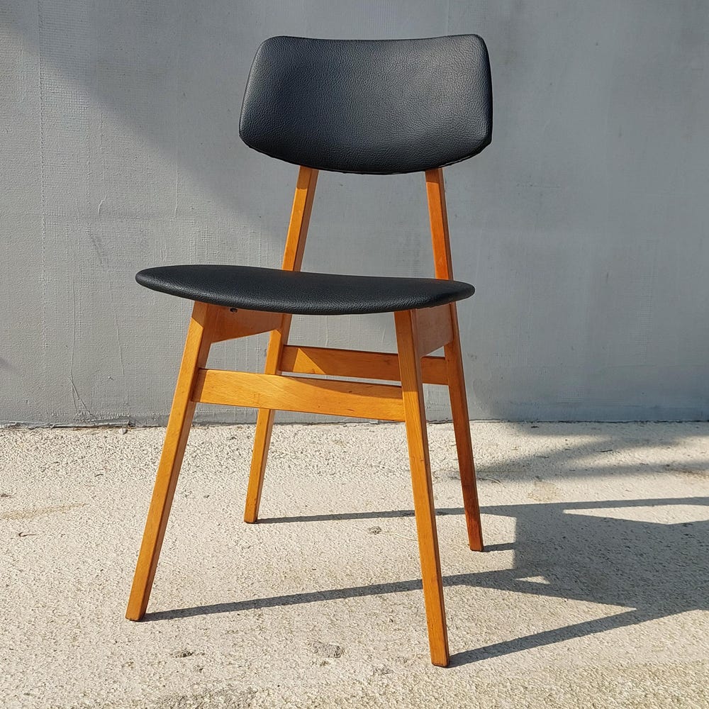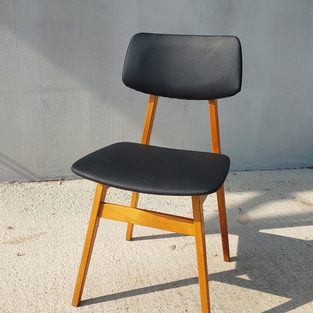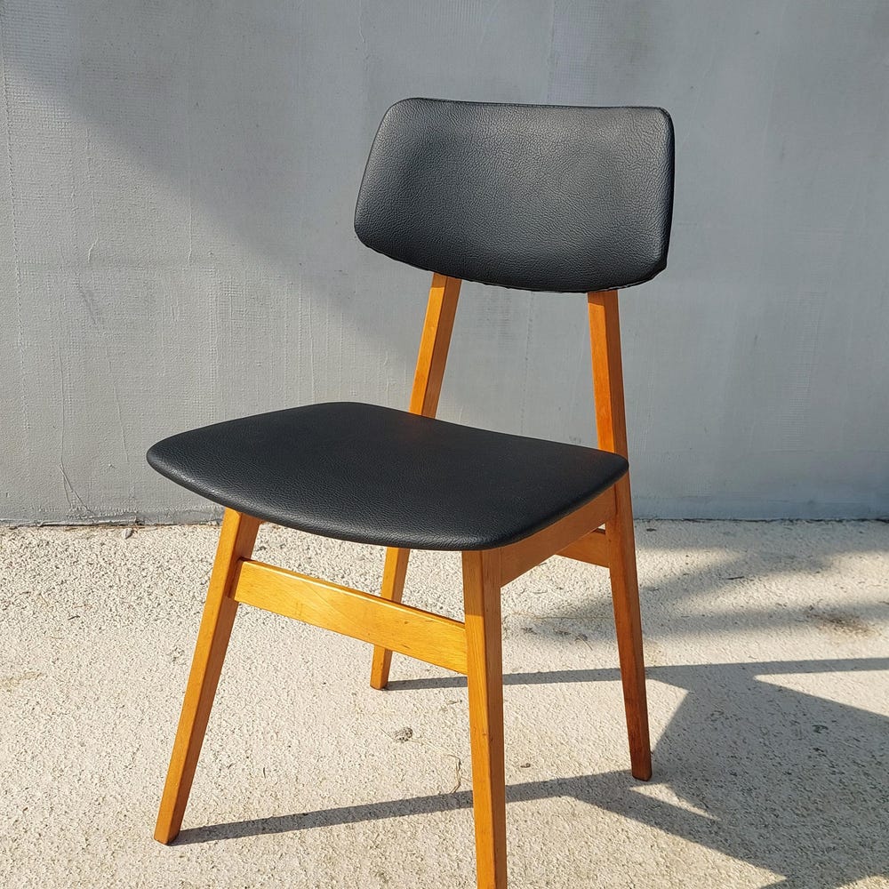 Mid Century Dining Chair, Scandinavian Design, Leather Dining Chair, Designer Chair, Stol Kamnik, 1970’s
