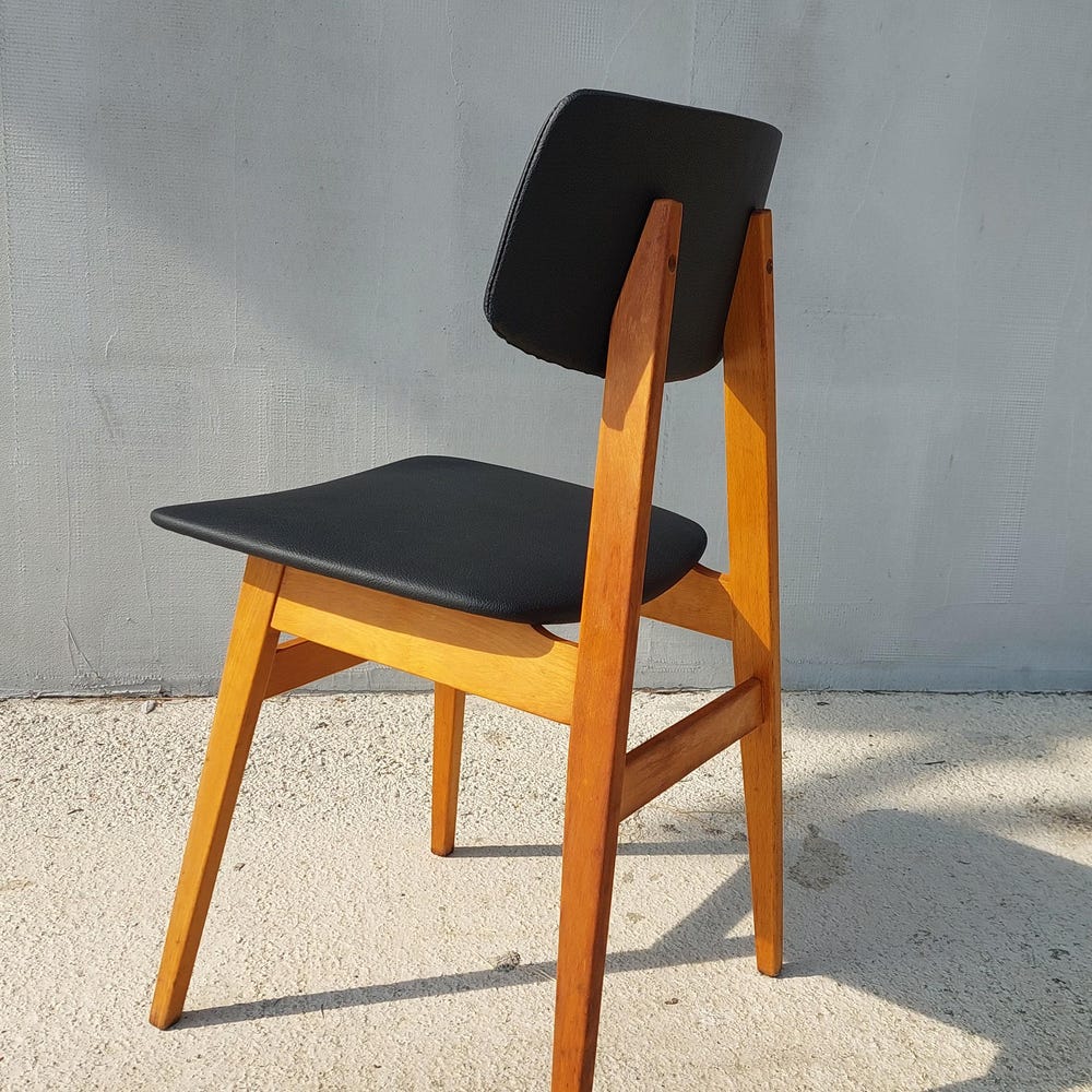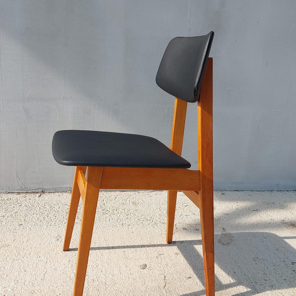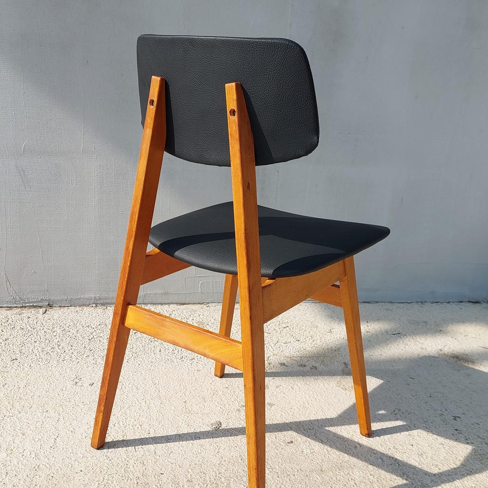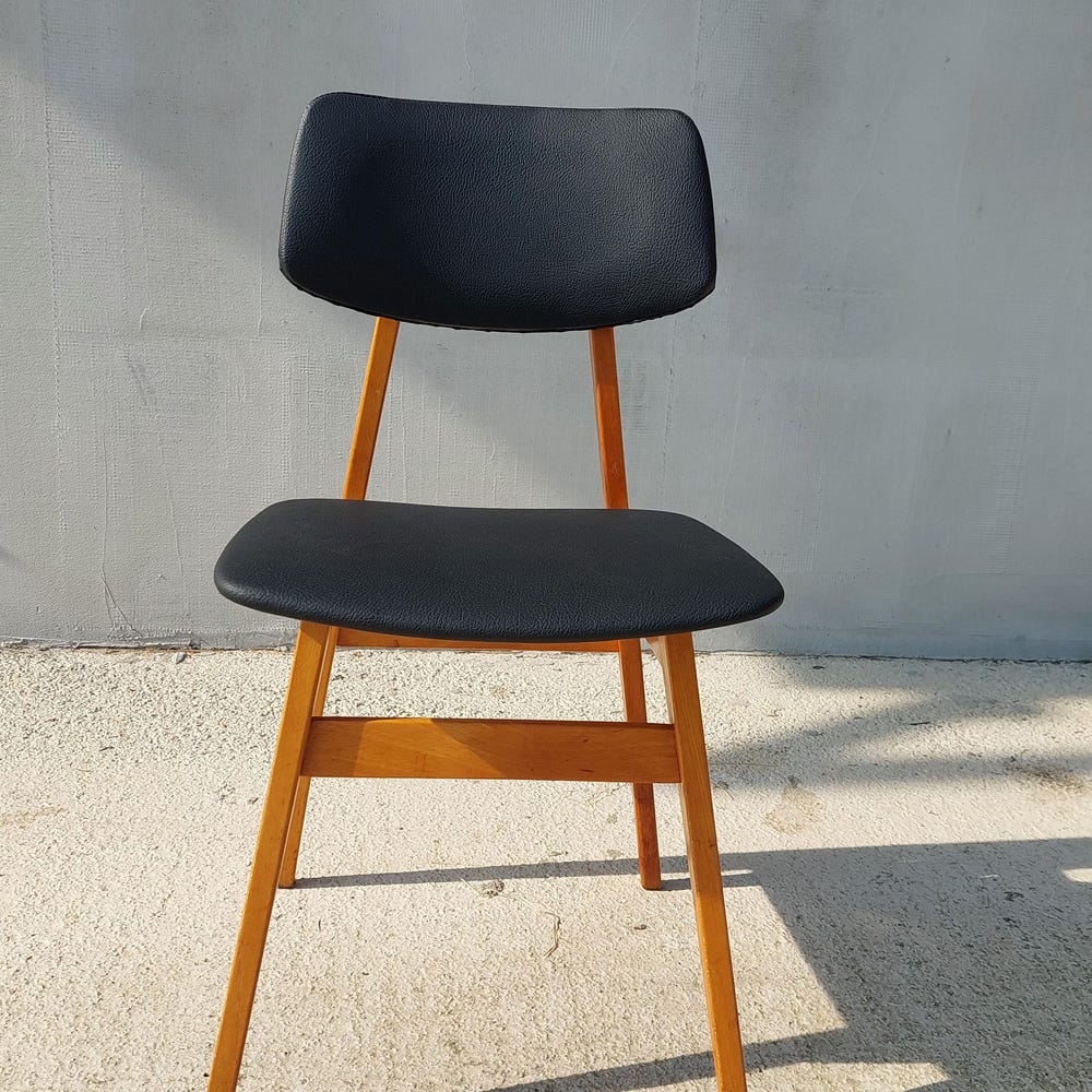 Mid Century Dining Chair, Scandinavian Design, Leather Dining Chair, Designer Chair, Stol Kamnik, 1970’s