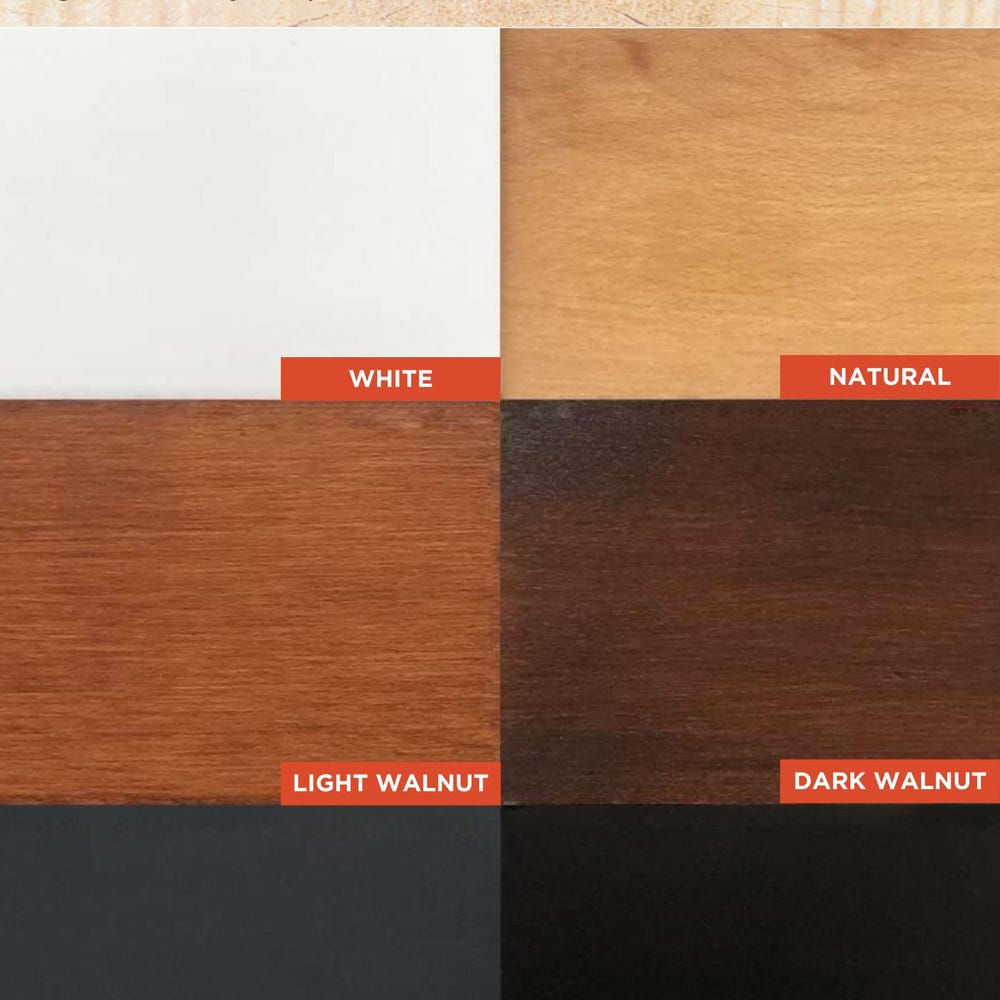 Please make sure to select your wood and leather or fabric options from our sample charts shown in the photos.