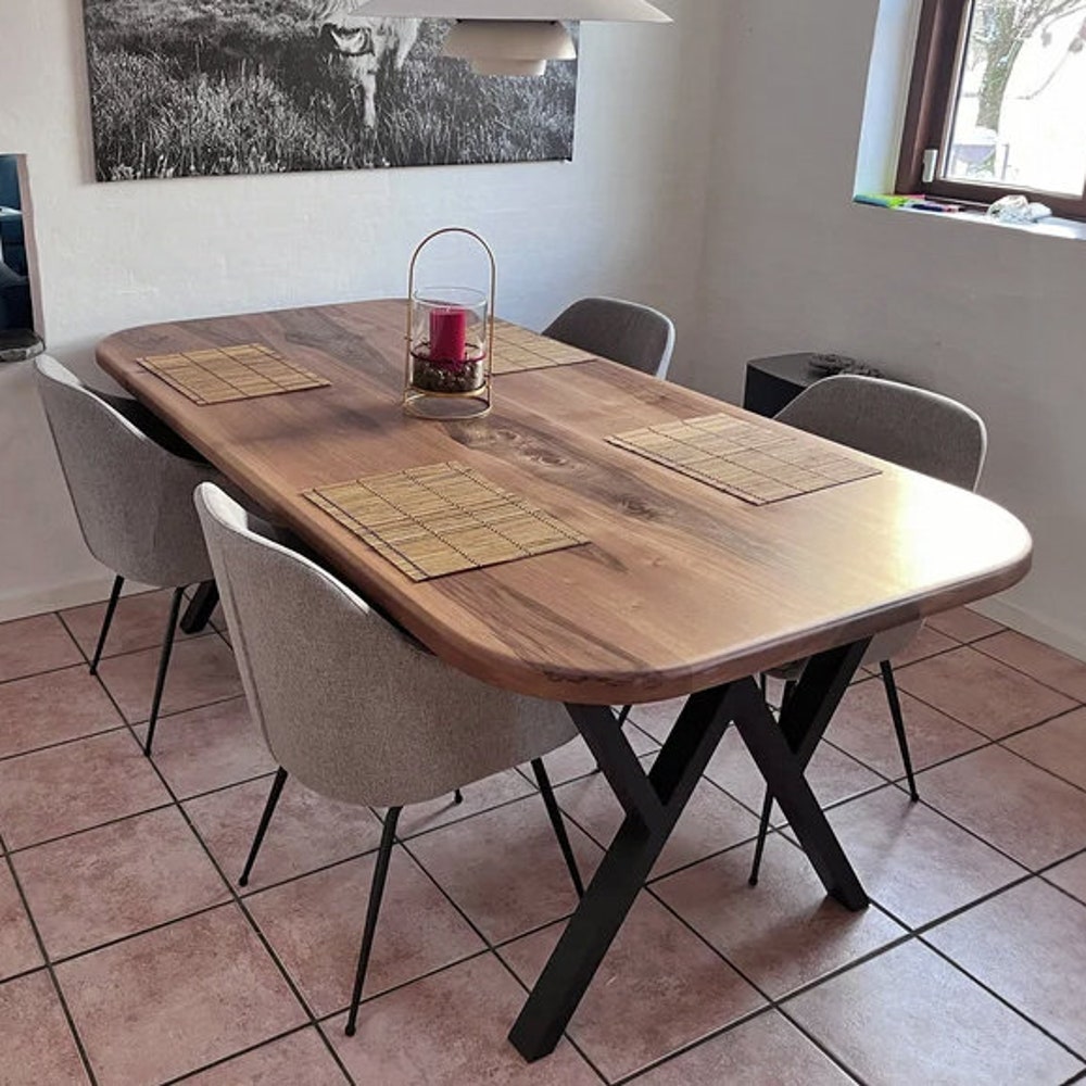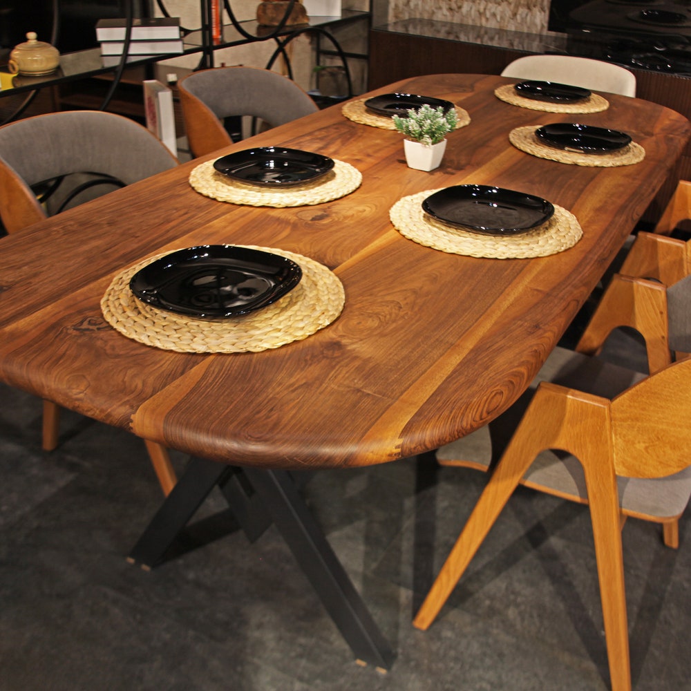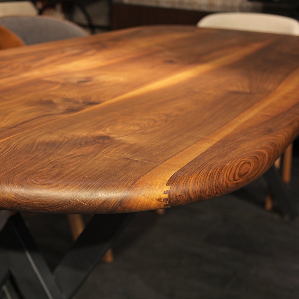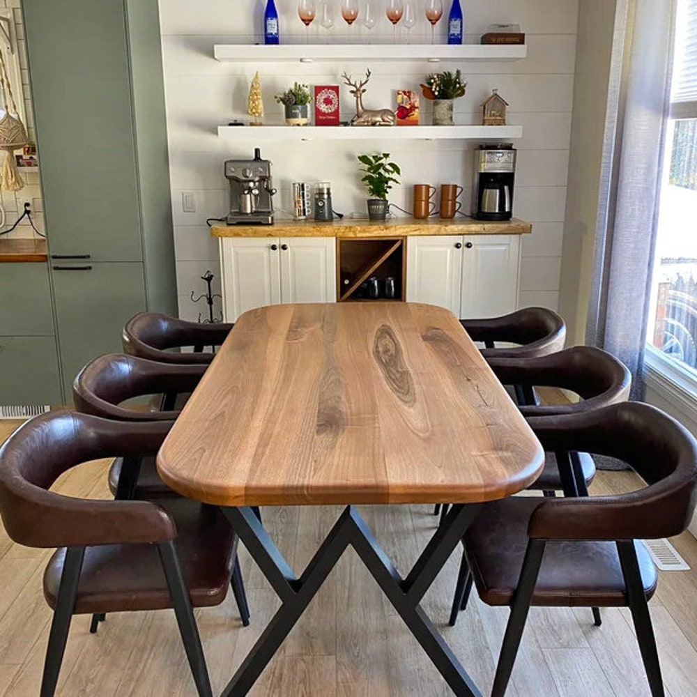 Mid Century Dining Table , Handmade Solid Wood Table With Metal Legs , Black Walnut Dining Room Table