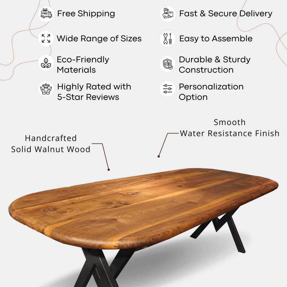 Mid-Century Modern Solid Wood Dining Table , Solid Walnut Wood Dining Table