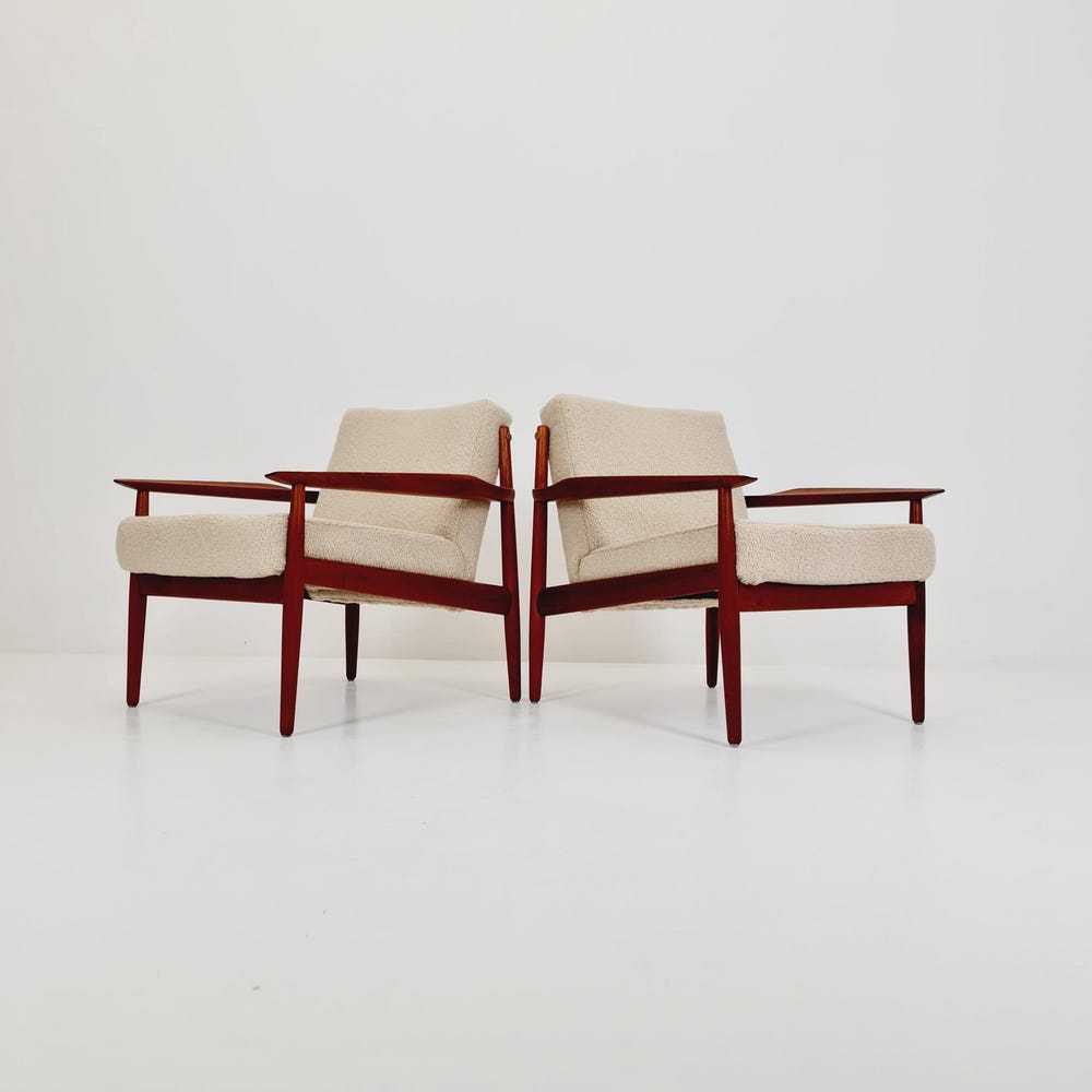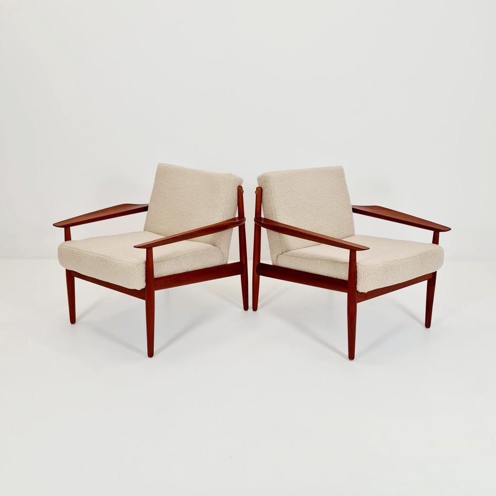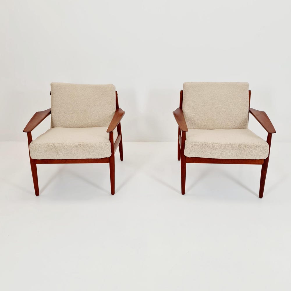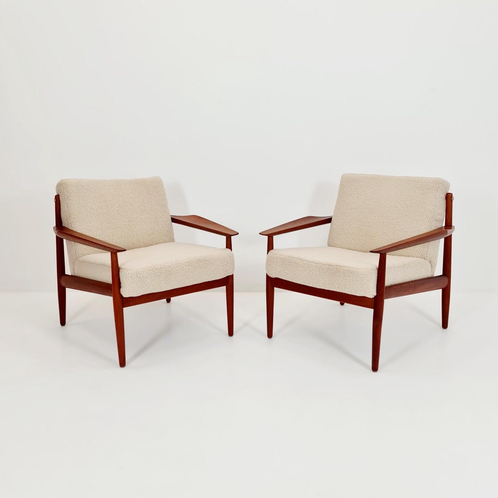 Mid century easy lounge chairs by Arne Vodder For Glostrup teak & brass, 1960s, Set of 2