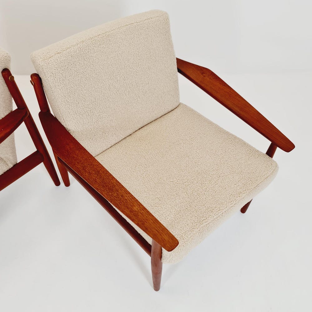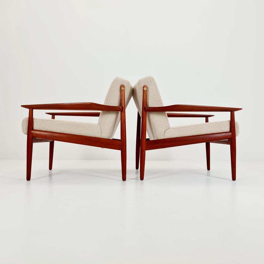Mid century easy lounge chairs by Arne Vodder For Glostrup , Denmark, teak & brass, 1960s, Set of 2