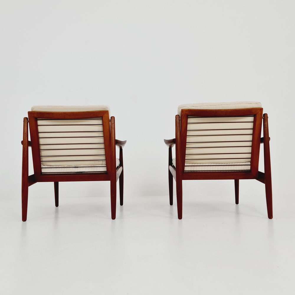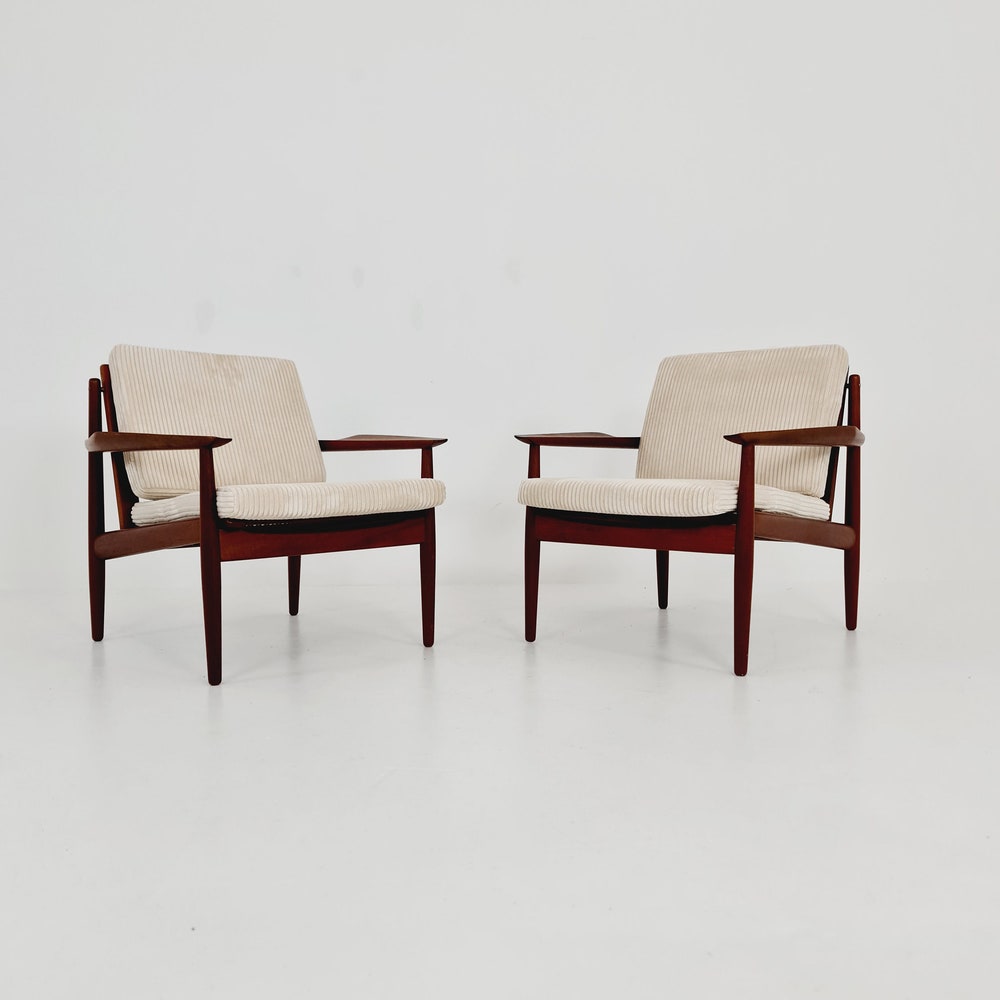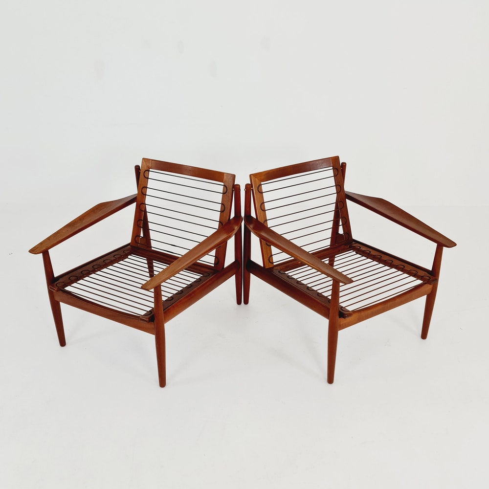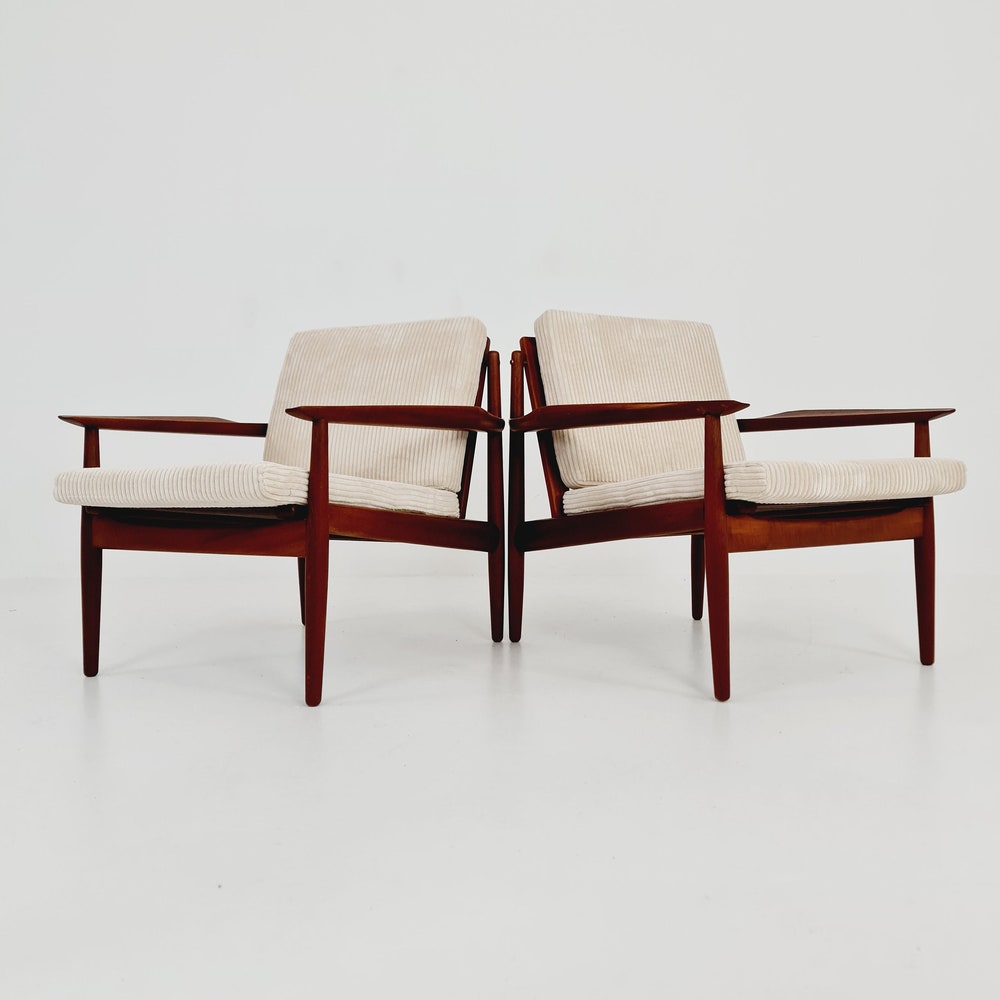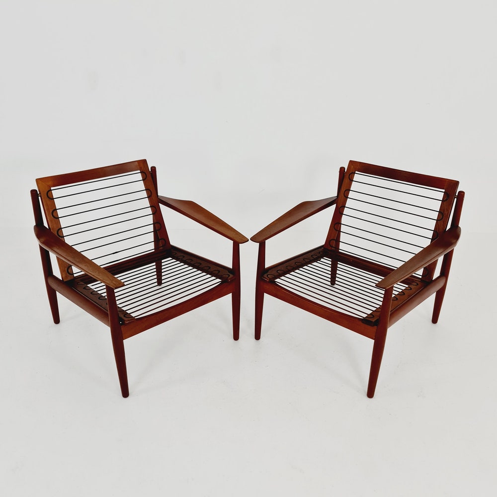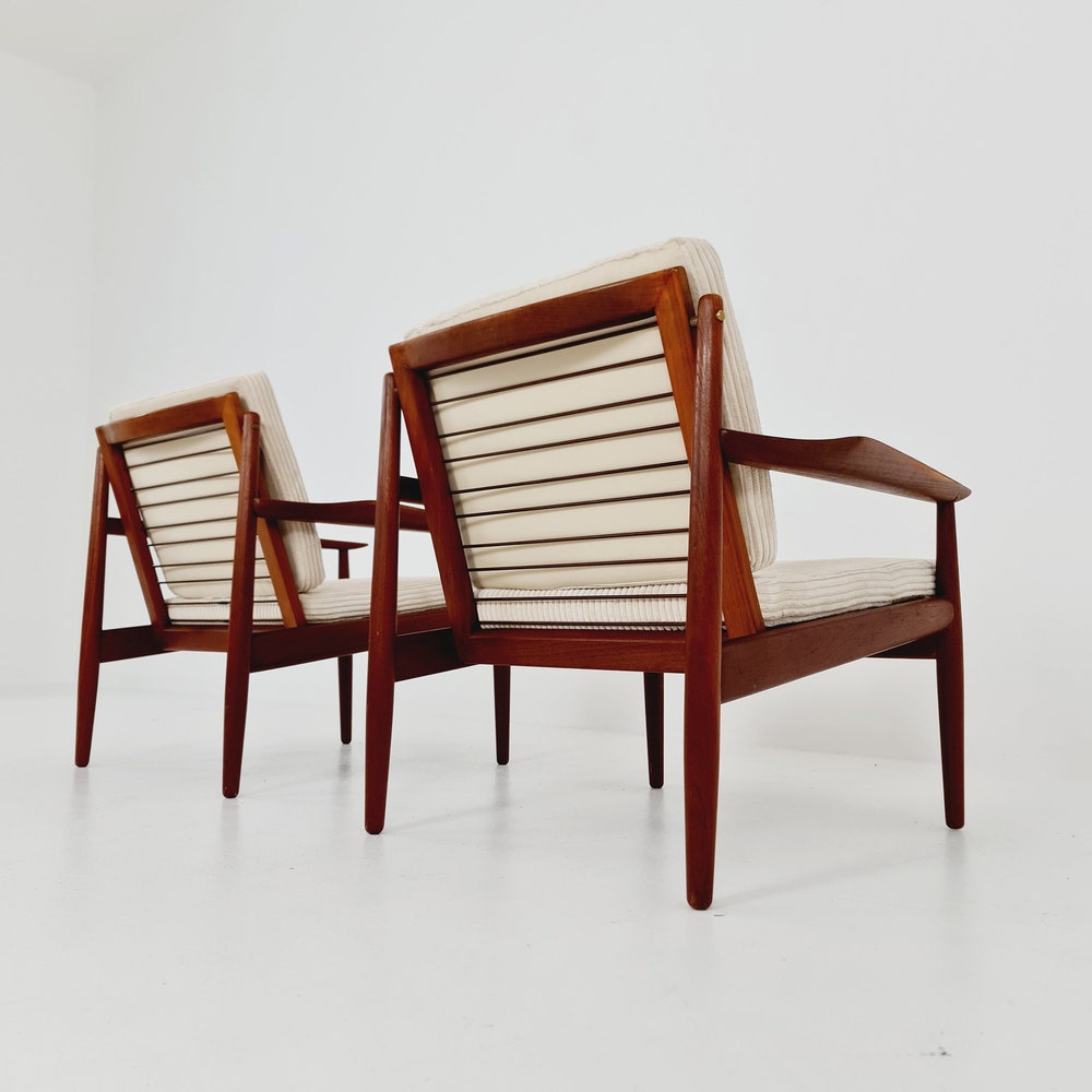 Mid century easy lounge chairs by Arne Vodder For Glostrup teak & brass, 1960s, Set of 2