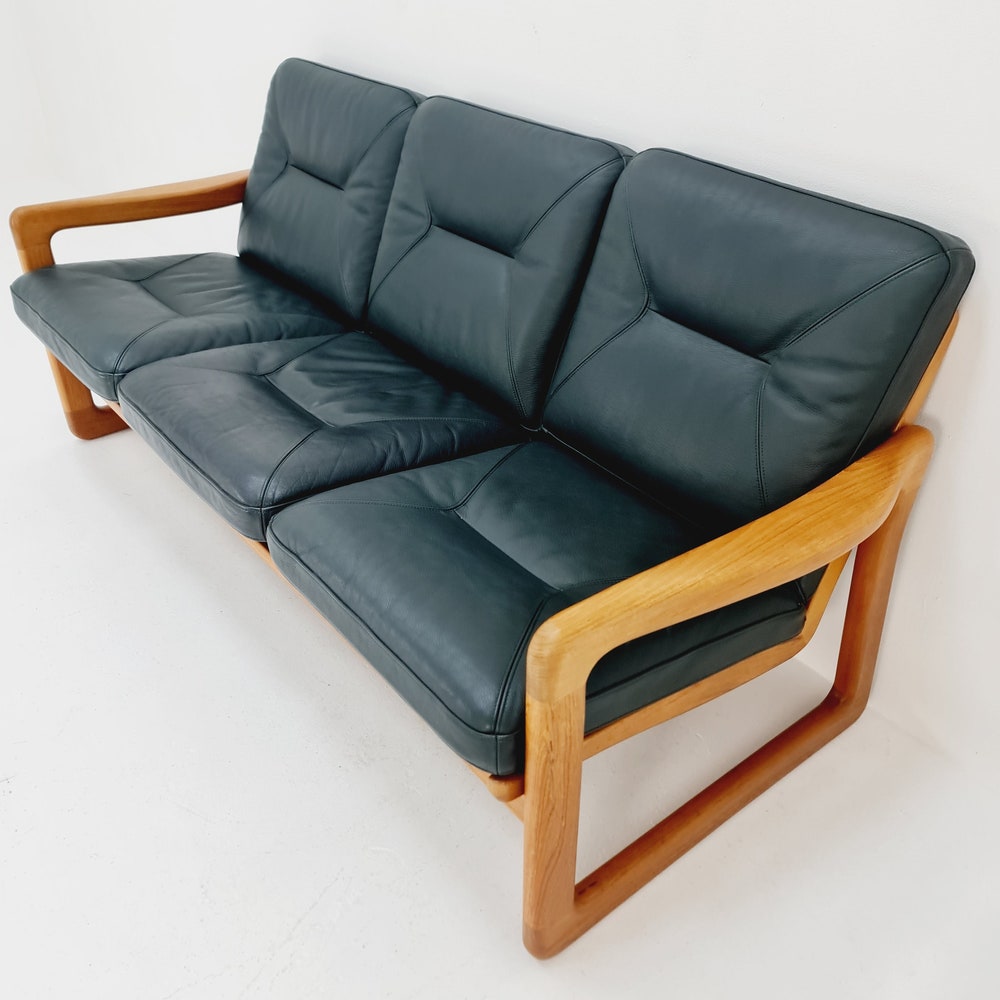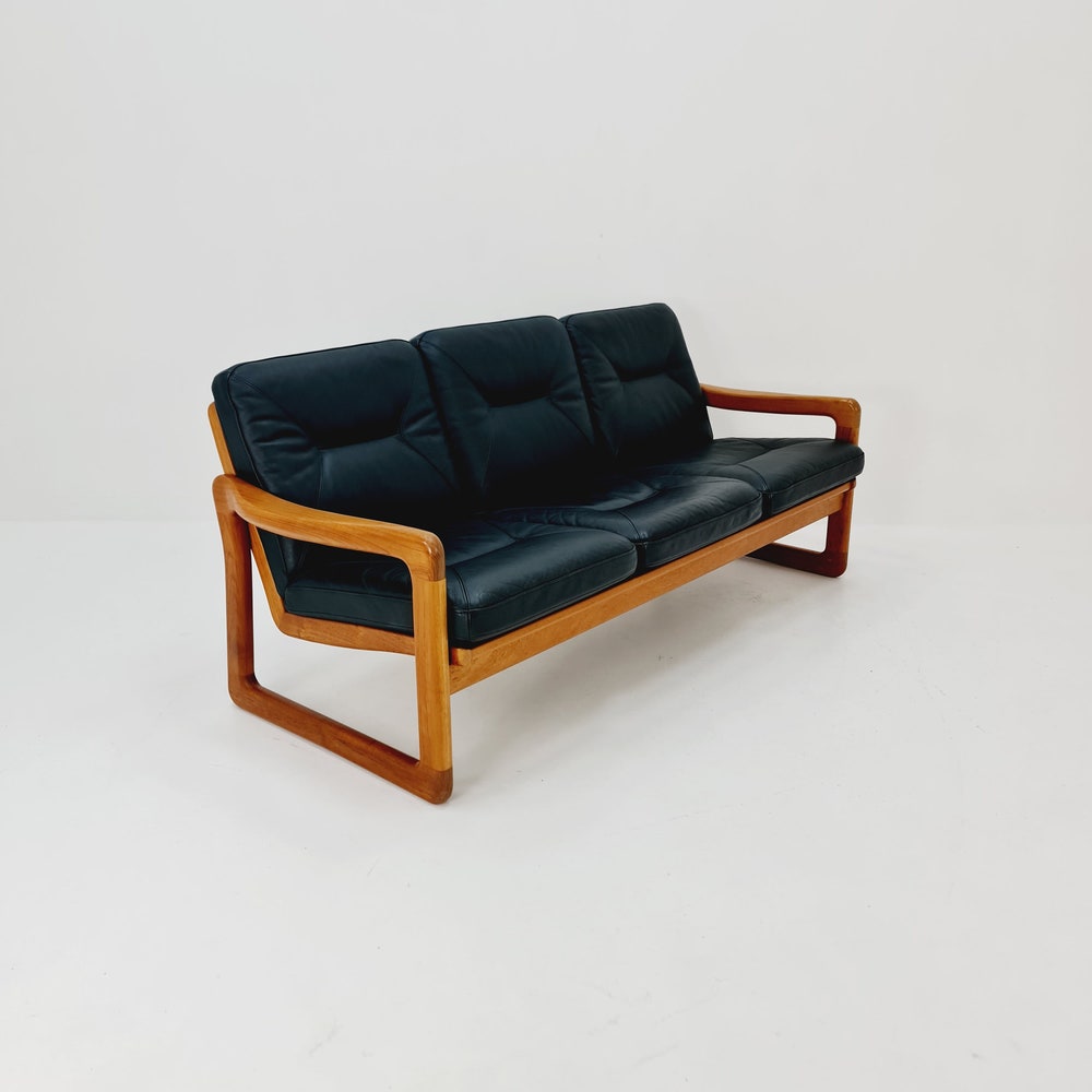 Mid century easy lounge couch by Holstebro MöbelFabrik Solid Teak and real lether, 1960s