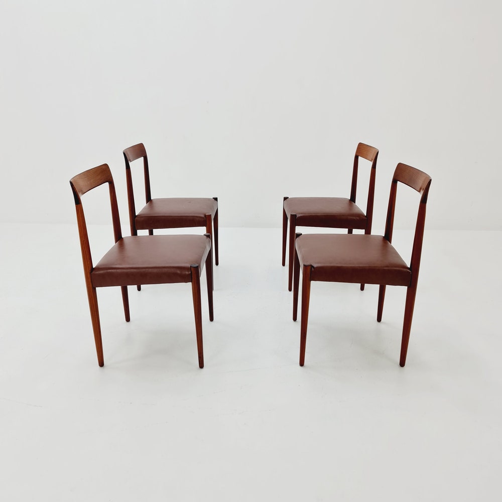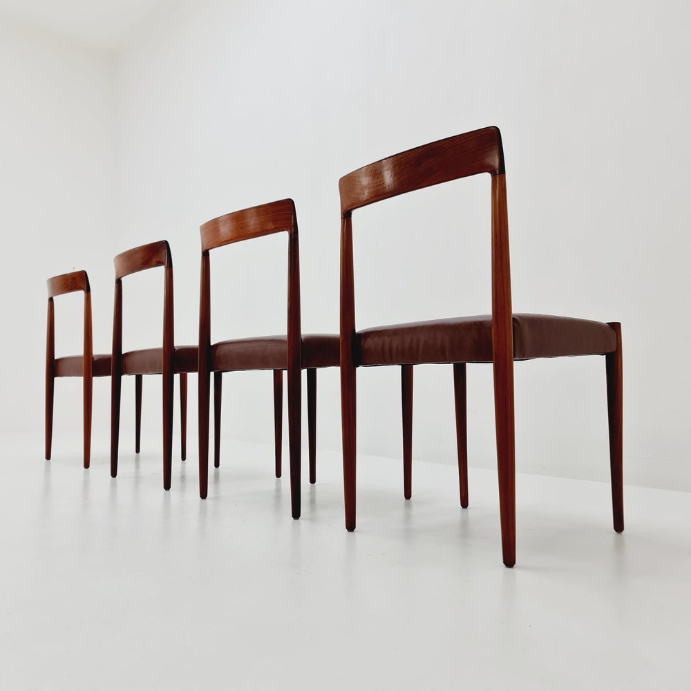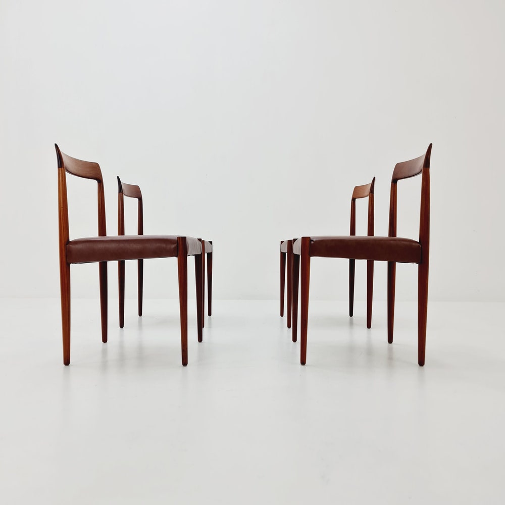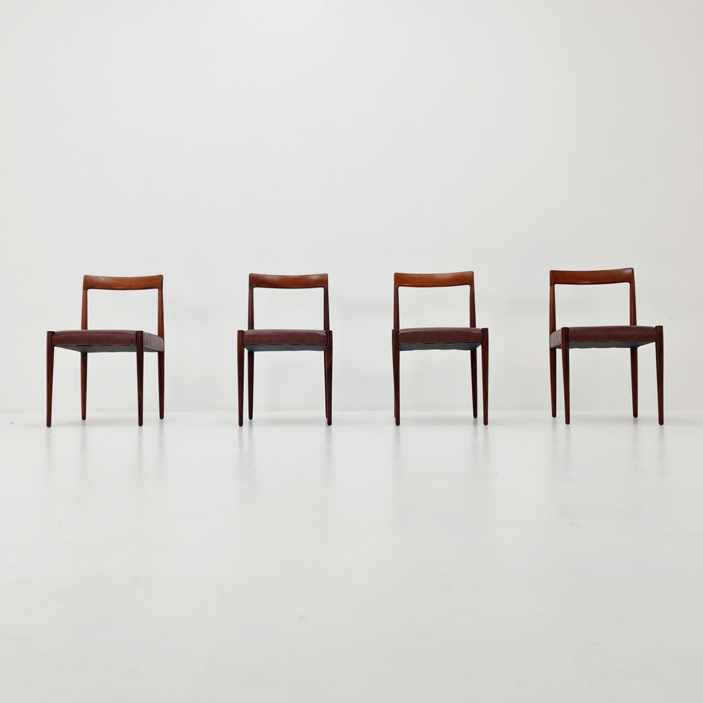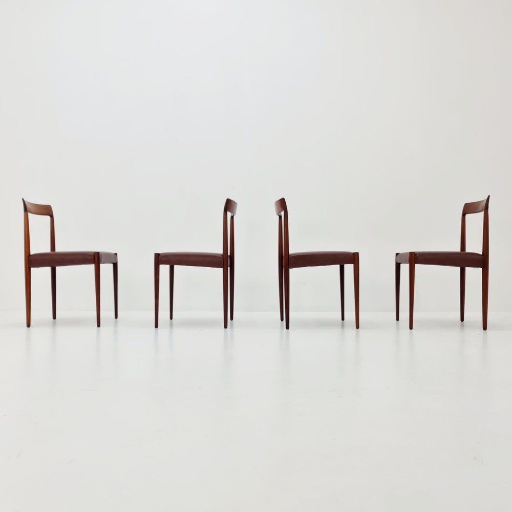 Mid Century German chairs by Lübke, 1960s Set of 4 The chair frames are made from solid Rosewood, in good vintage condition, however, as with all vintage items some minor wear marks should be expected. Designer/Manufacturer: Lübke Worldwide shipping availablele.Dimensions: Width: 44 cmHeight: 78 cmSeat Depth: 42cmSeat height: 44 cm Please inquiry for prices to […]