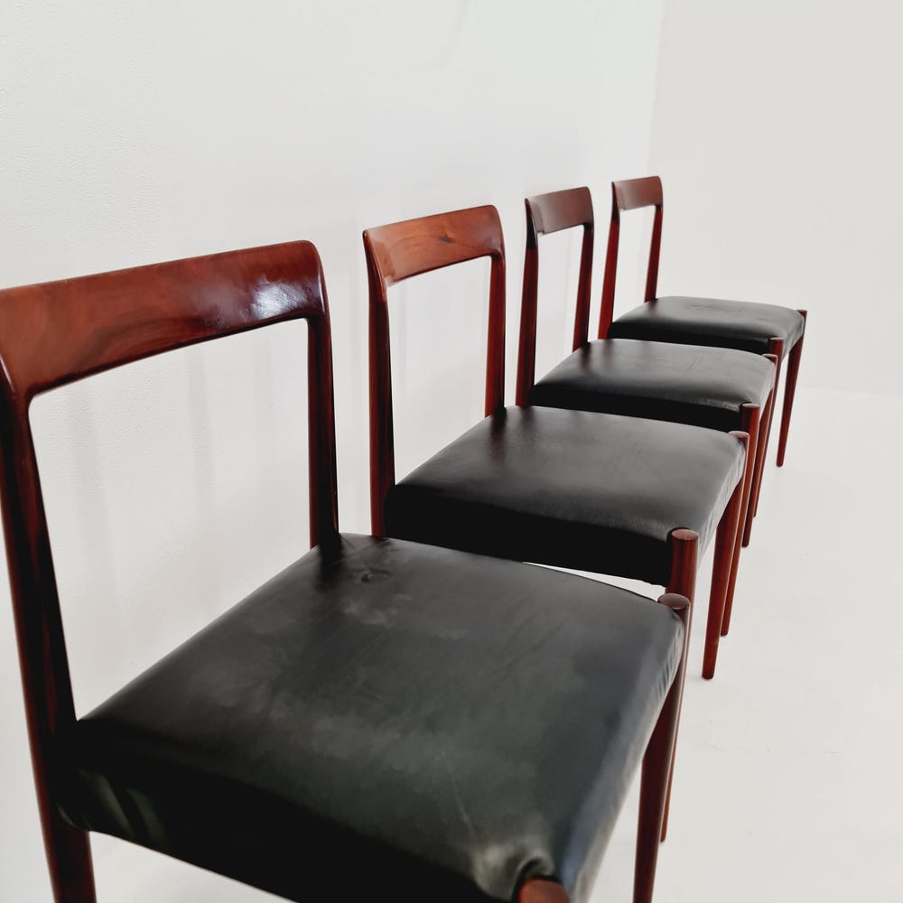 Mid century German rosewood & leather Dining Chair by Lübke, 1960s, set of 6 The chair frames are made from solid rosewood and original black leather It is in good vintage condition, however, as with all vintage items some minor wear marks should be expected. Price is for the 6 chairs Dimensions:Width: 45 cmDepth: 45 […]