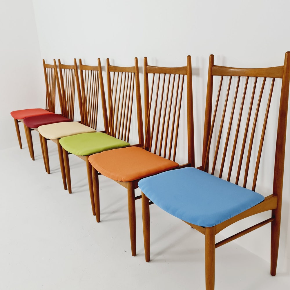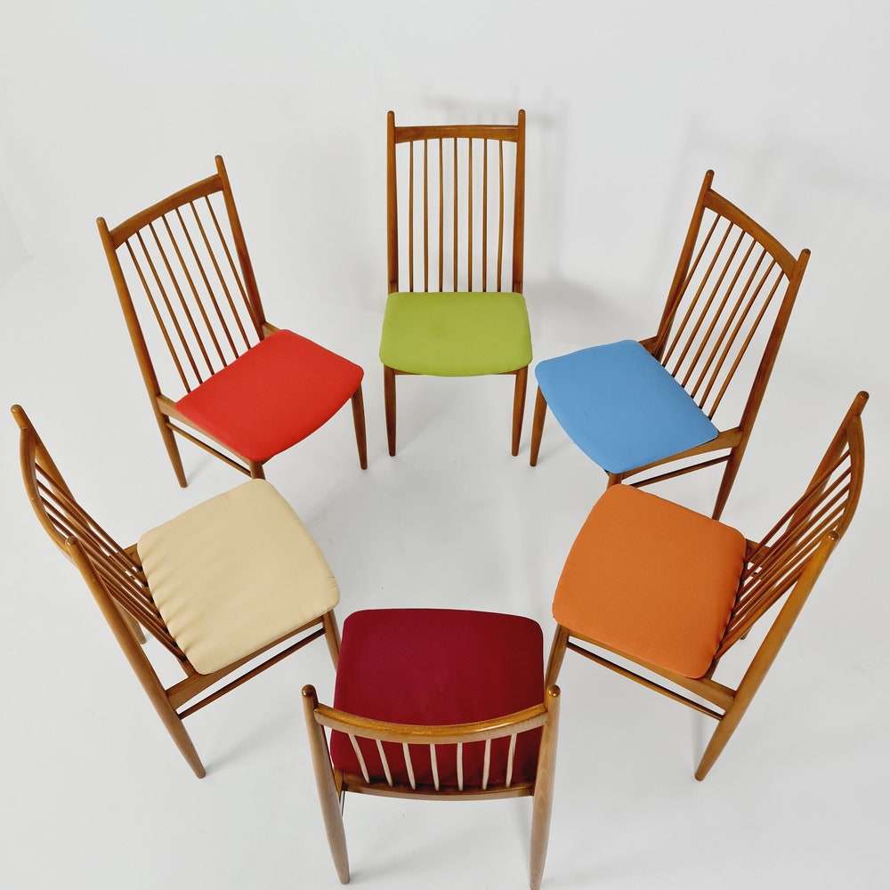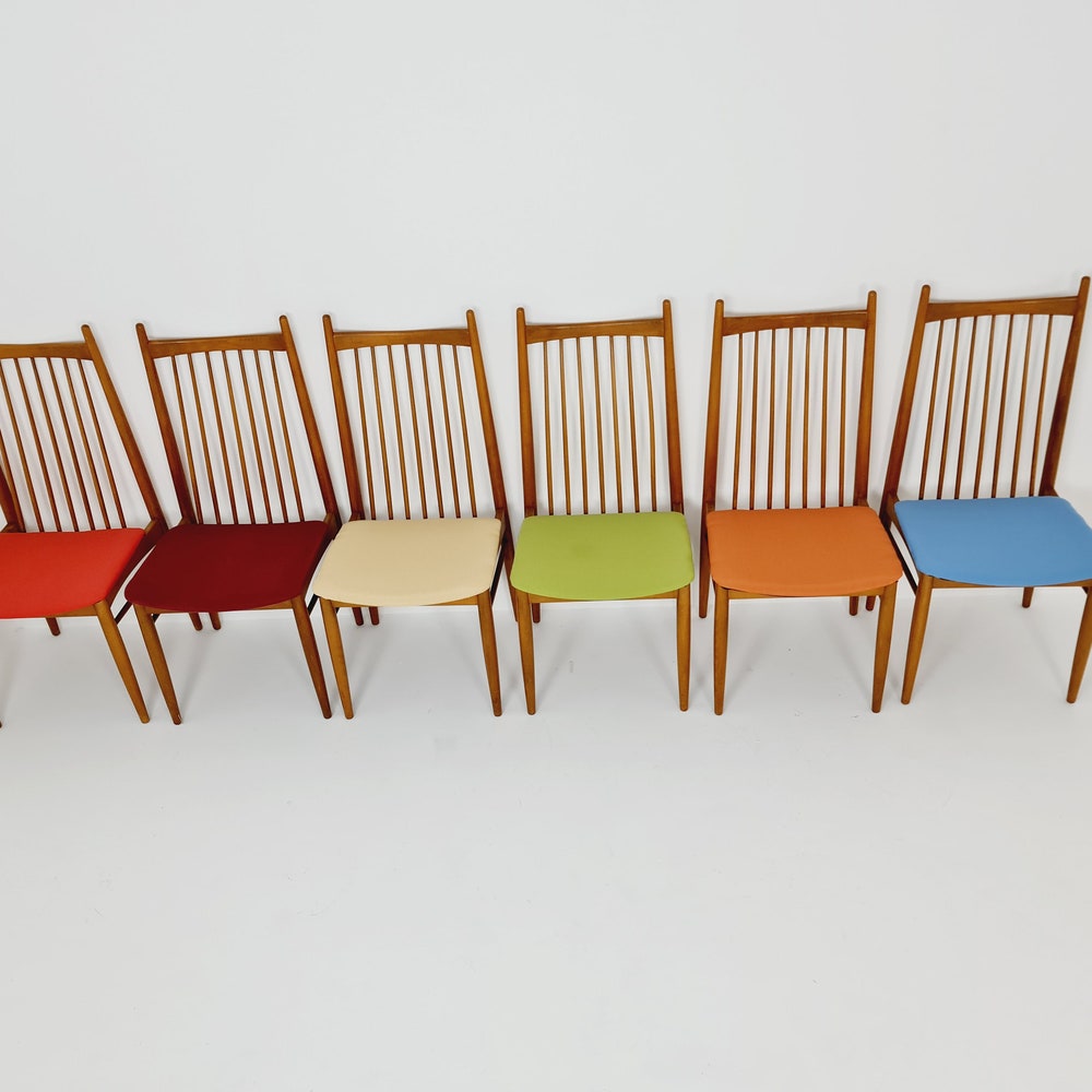 Mid Century German solid oak, 6 Dining Chairs by Ernst Martin Derringer
