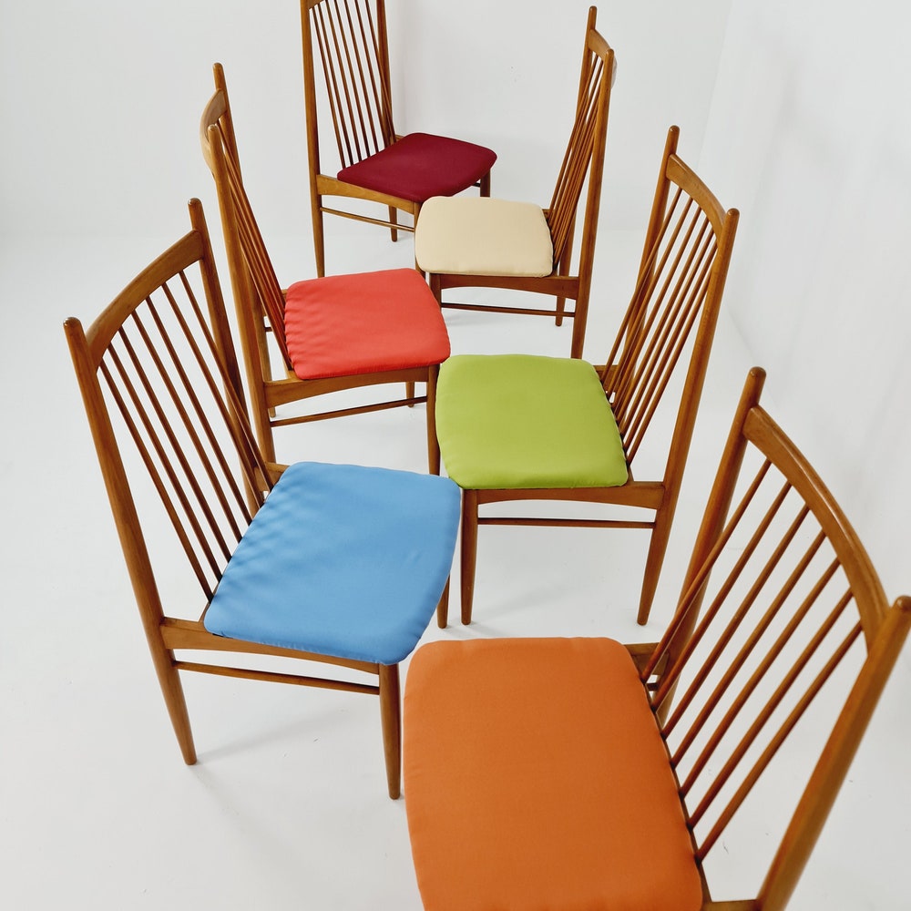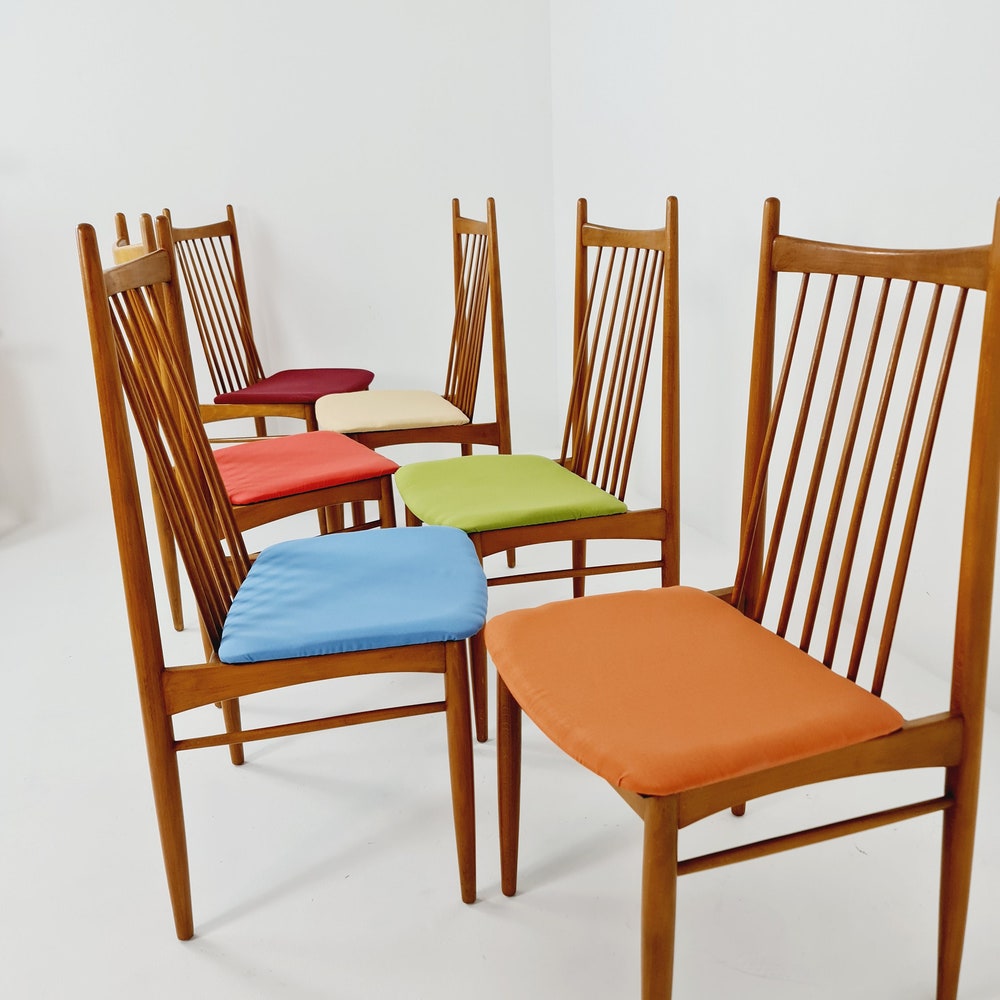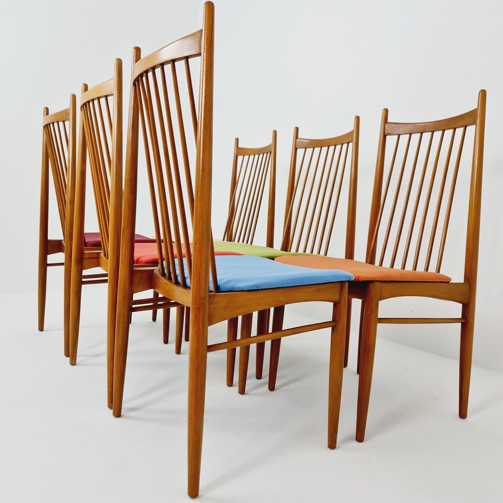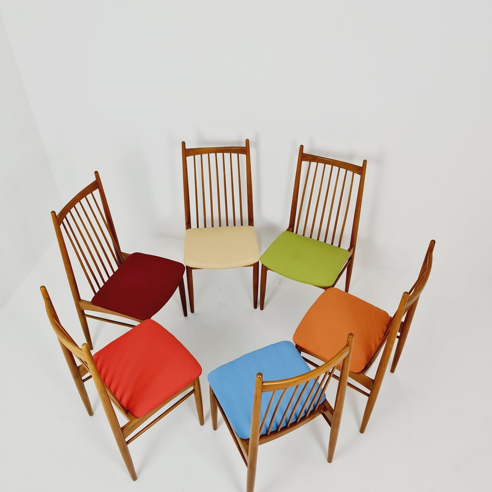 Mid Century German solid oak, 6 Dining Chairs by Ernst Martin Derringer