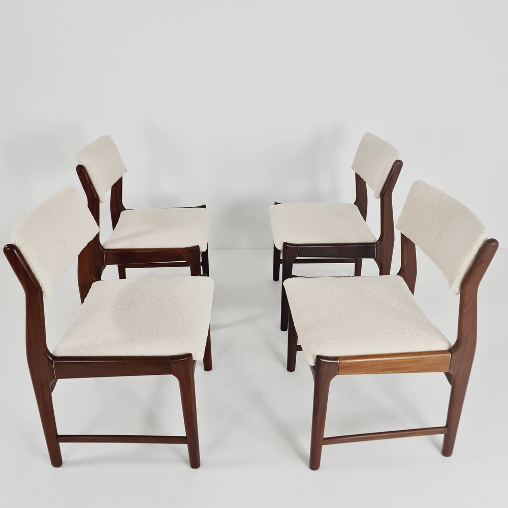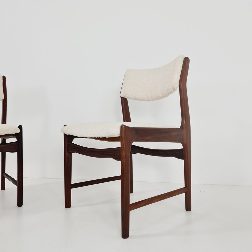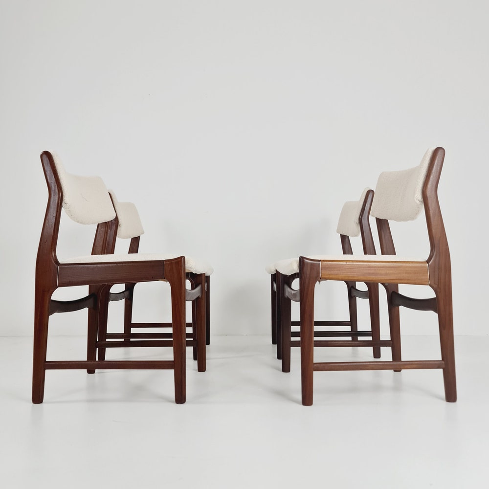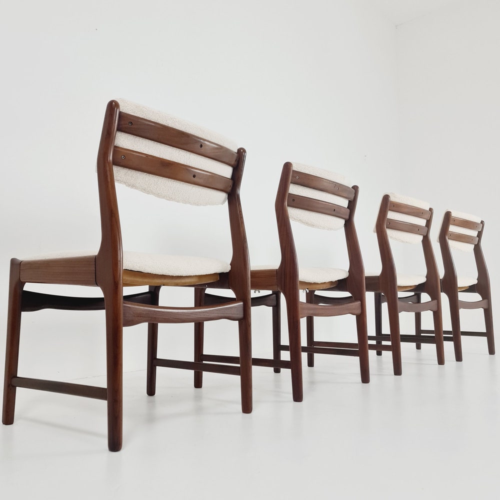 Mid century German teak teddy fabric dining chairs by De Coene, 1960s, set of 4