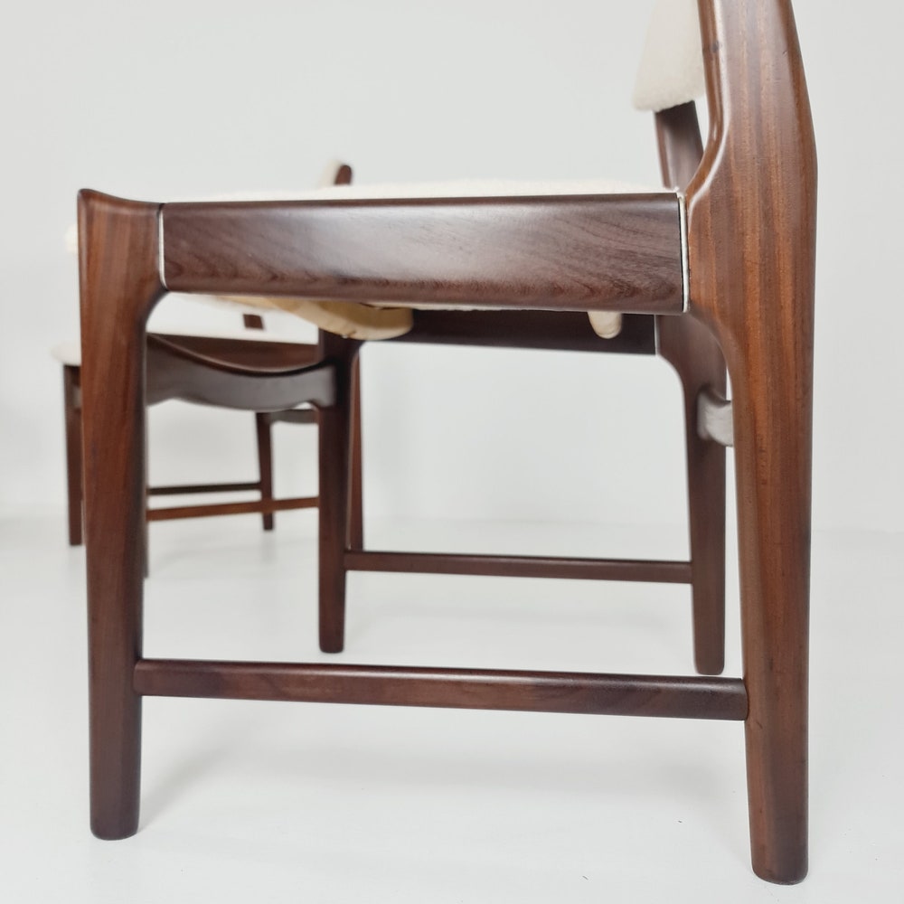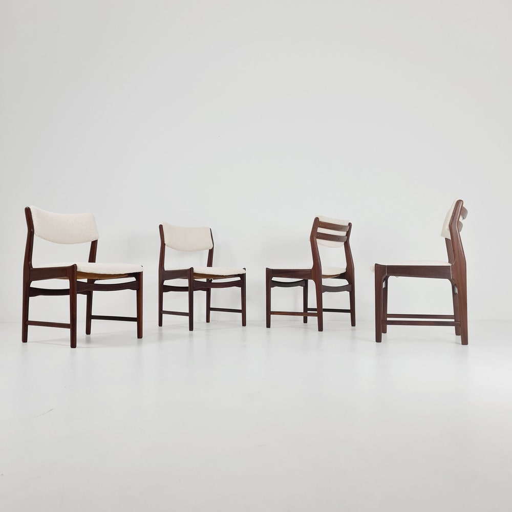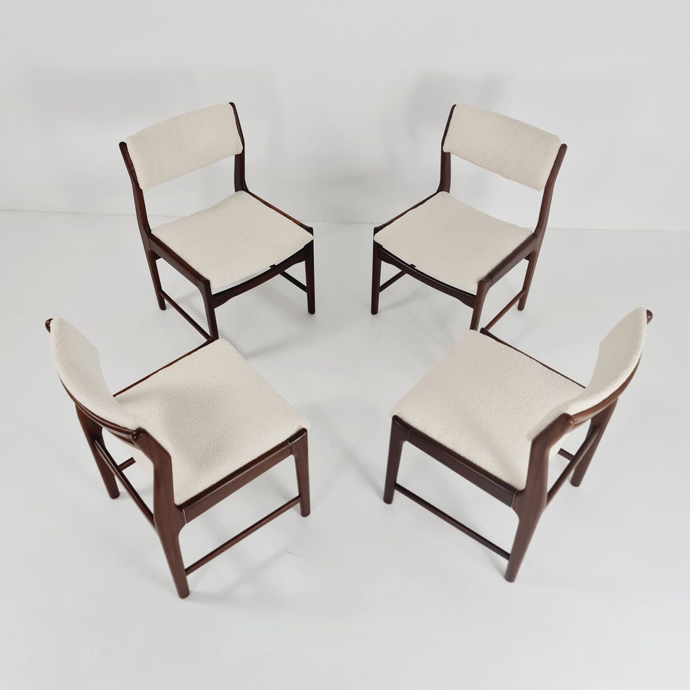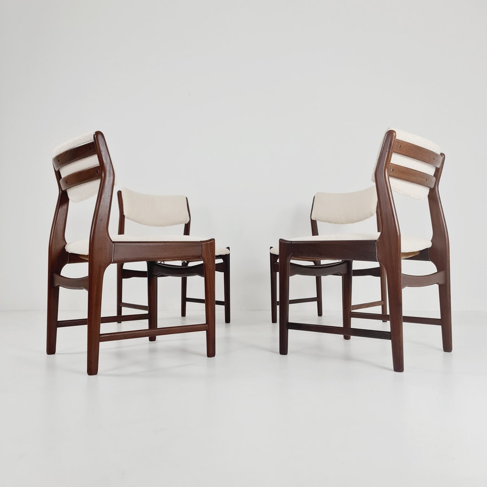 Mid century German teak teddy fabric dining chairs by De Coene, 1960s, set of 4