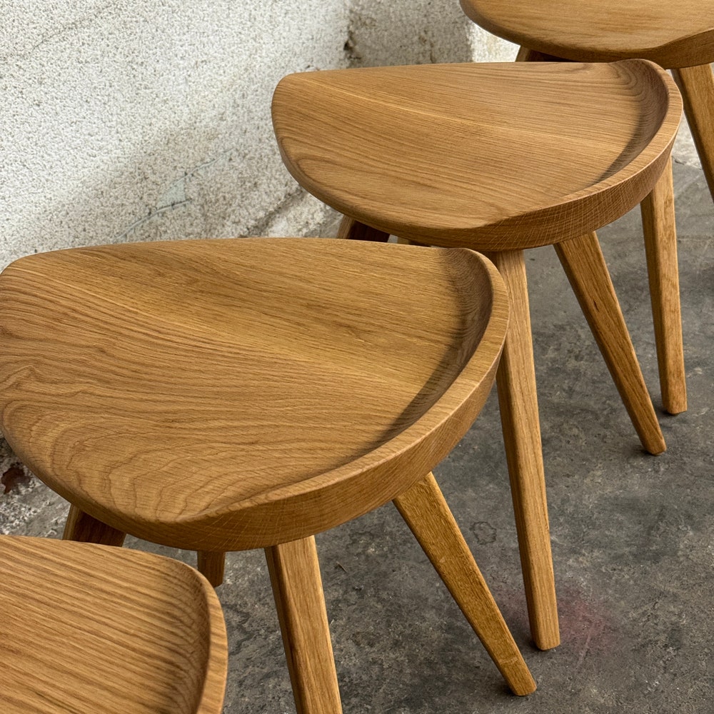 After sanding the seat and frame to 320 grit, we apply Osmo Polyx hard wax/oil, leaving a silky finish which highlights the texture of the wood while providing durable protection from spills and everyday use.