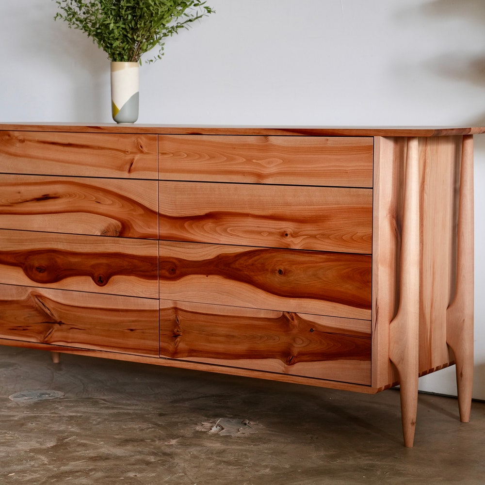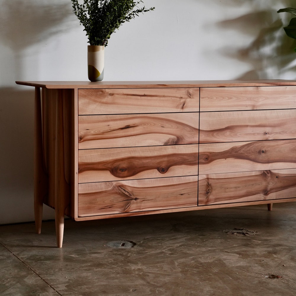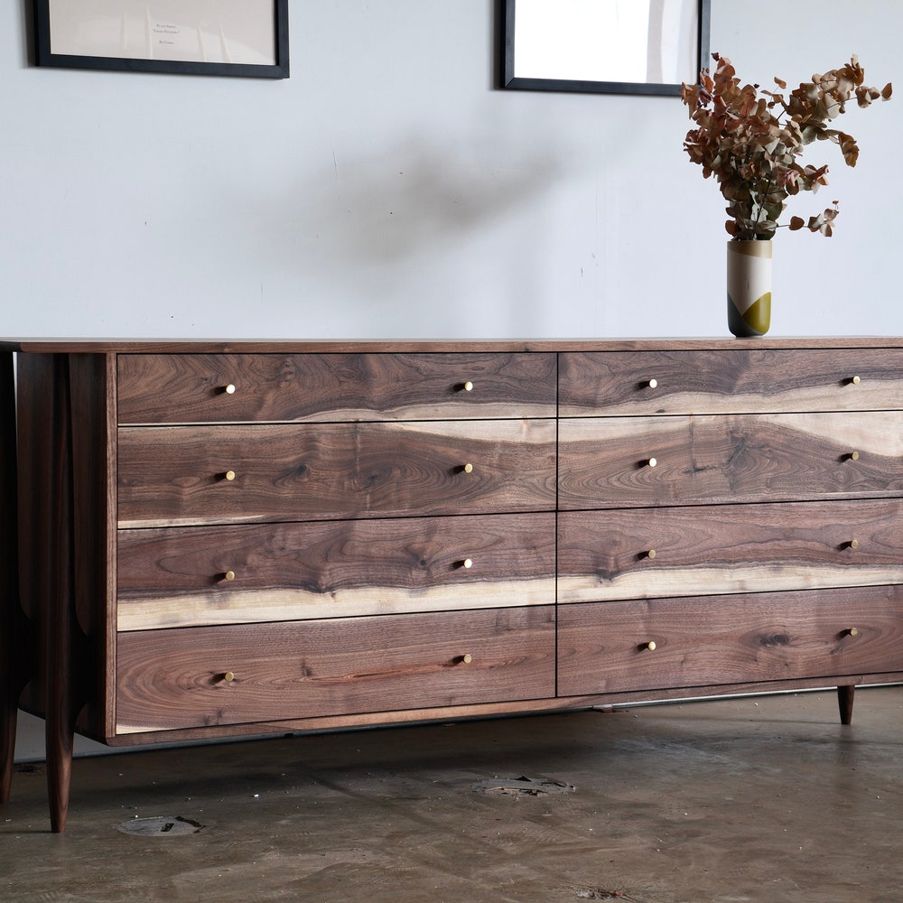 Mid Century Modern Dresser / 8 drawer solid wood dresser / dovetail drawers / push to open / Madrone Walnut Maple Cherry White oak Options