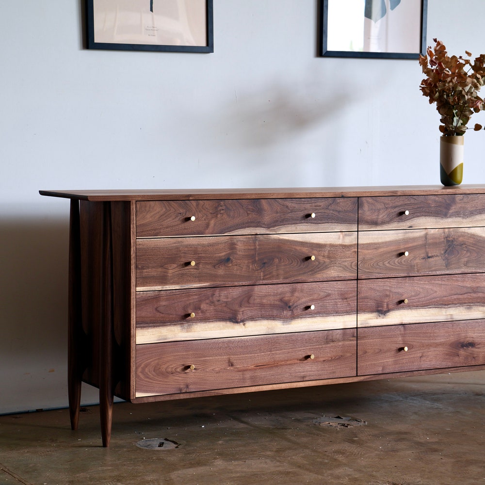 Mid Century Modern Dresser / Figured Walnut and Brass Dresser / Made To Order Dresser