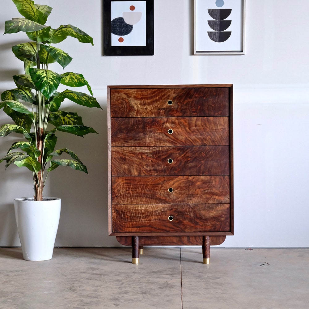 Mid Century Modern Dresser / Handmade Walnut Dresser / Scandinavia solid Wood Dresser / 5 Drawer Dresser