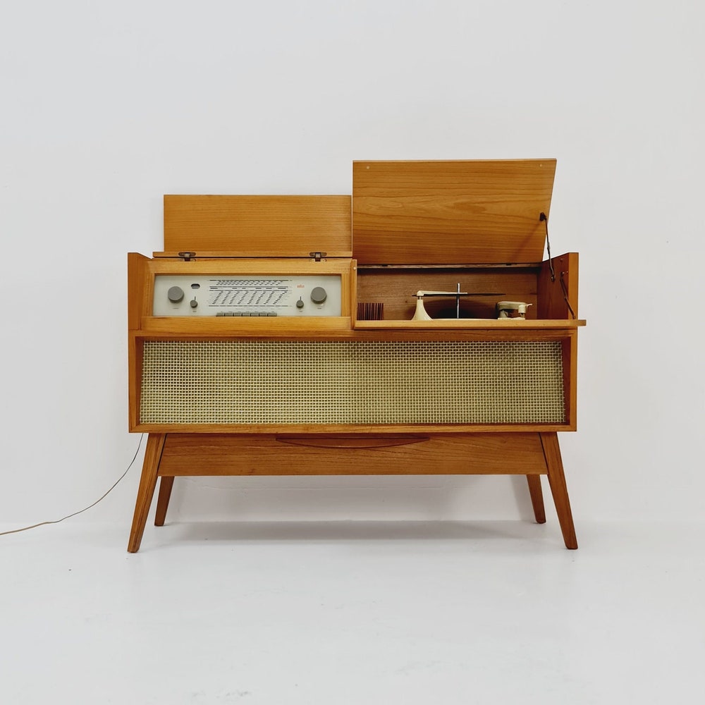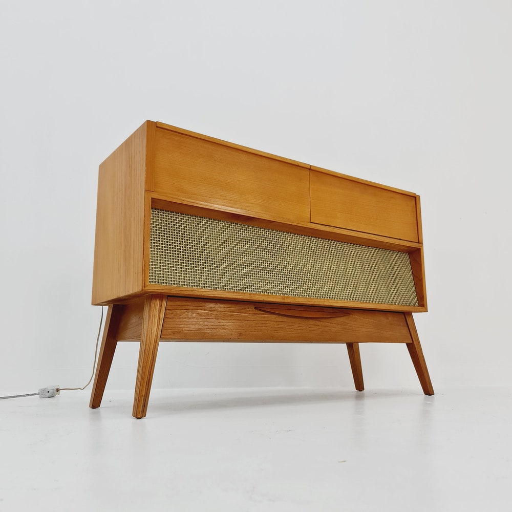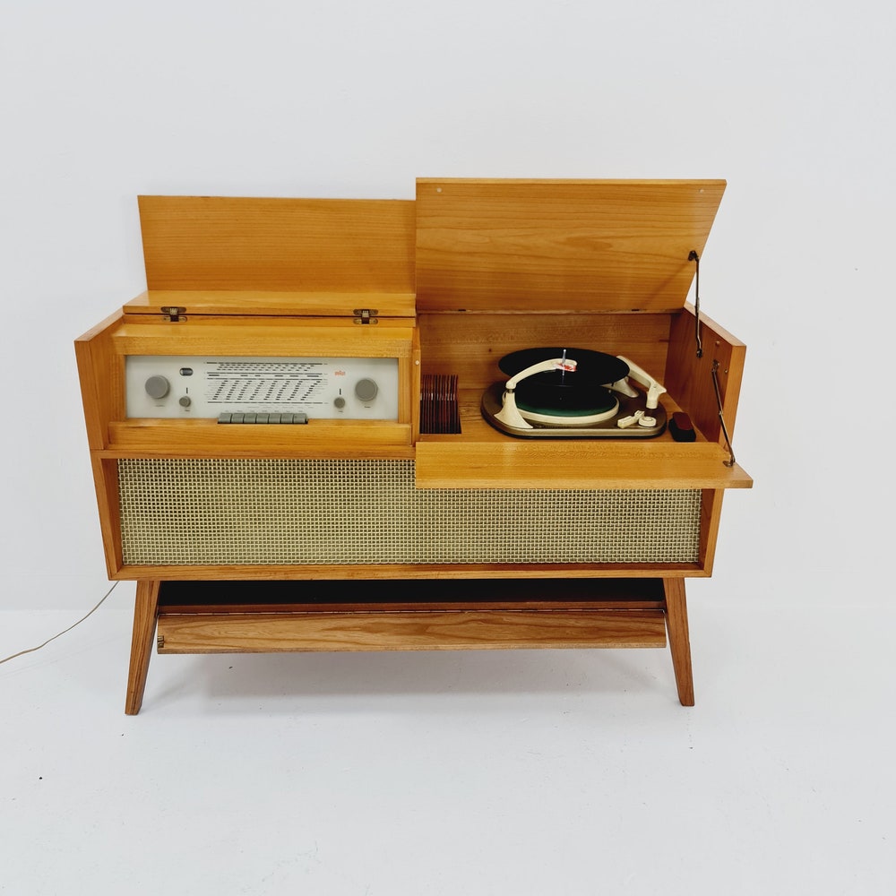 Mid Century Modern German ash record player, radio by Braun “MM 4 ”, 1960s