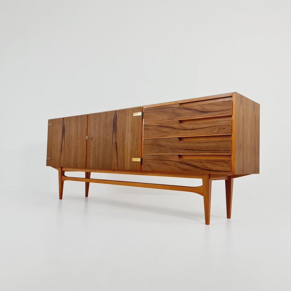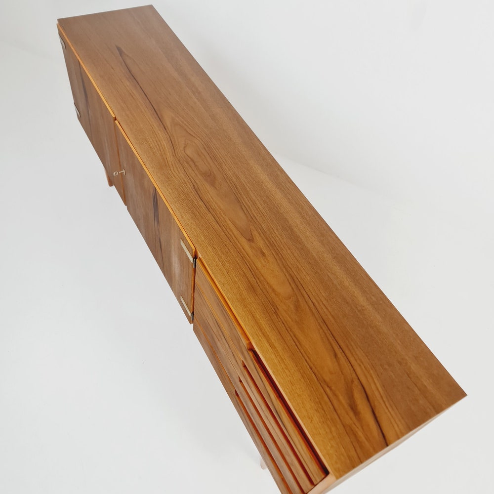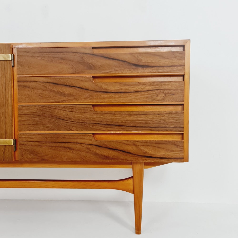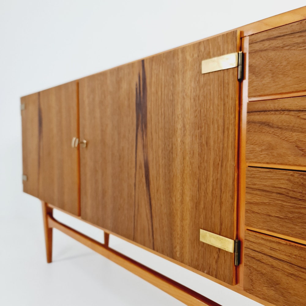 Mid Century Modern German Rare sideboard teak, elm & brass by D. Waldmann, 1960s