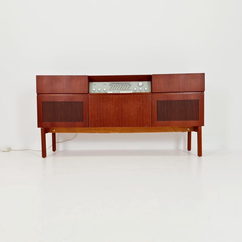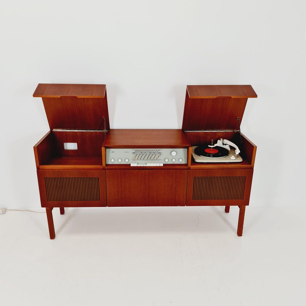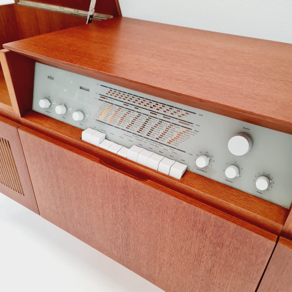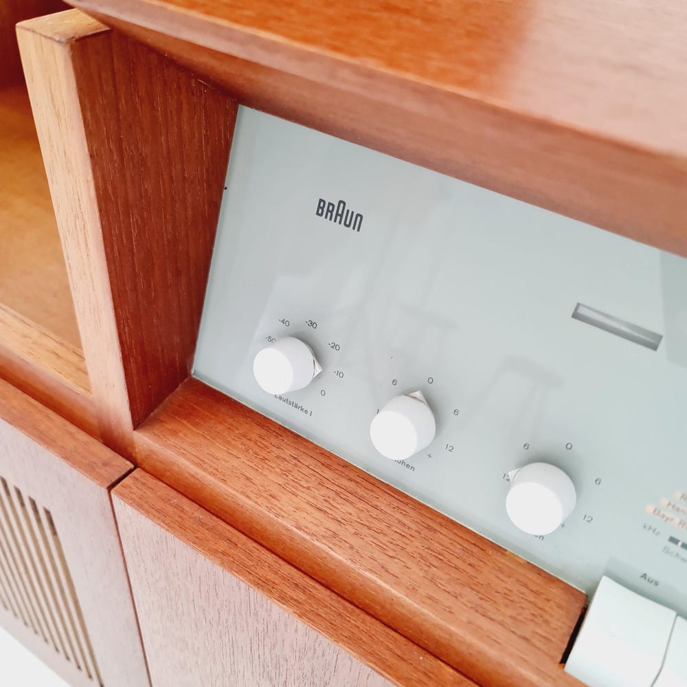 Mid Century Modern German Teak record player, radio by Braun “R 32”, 1960s