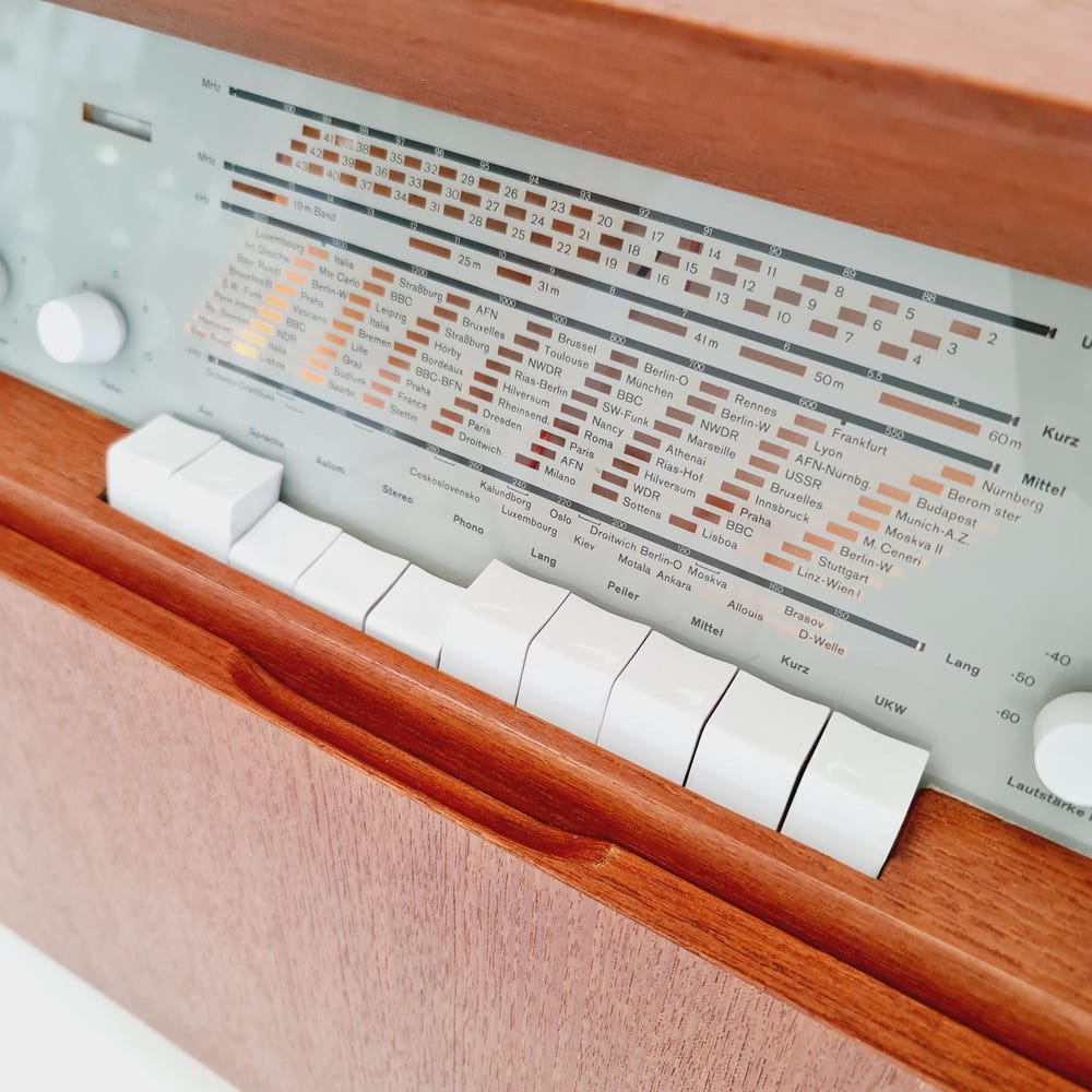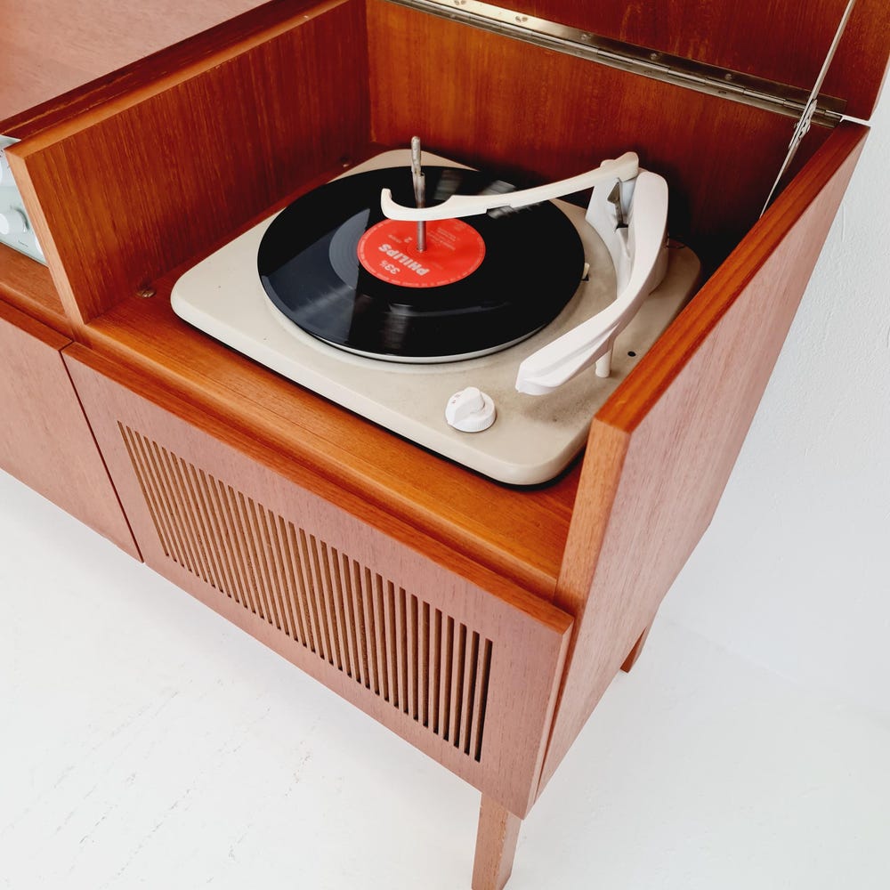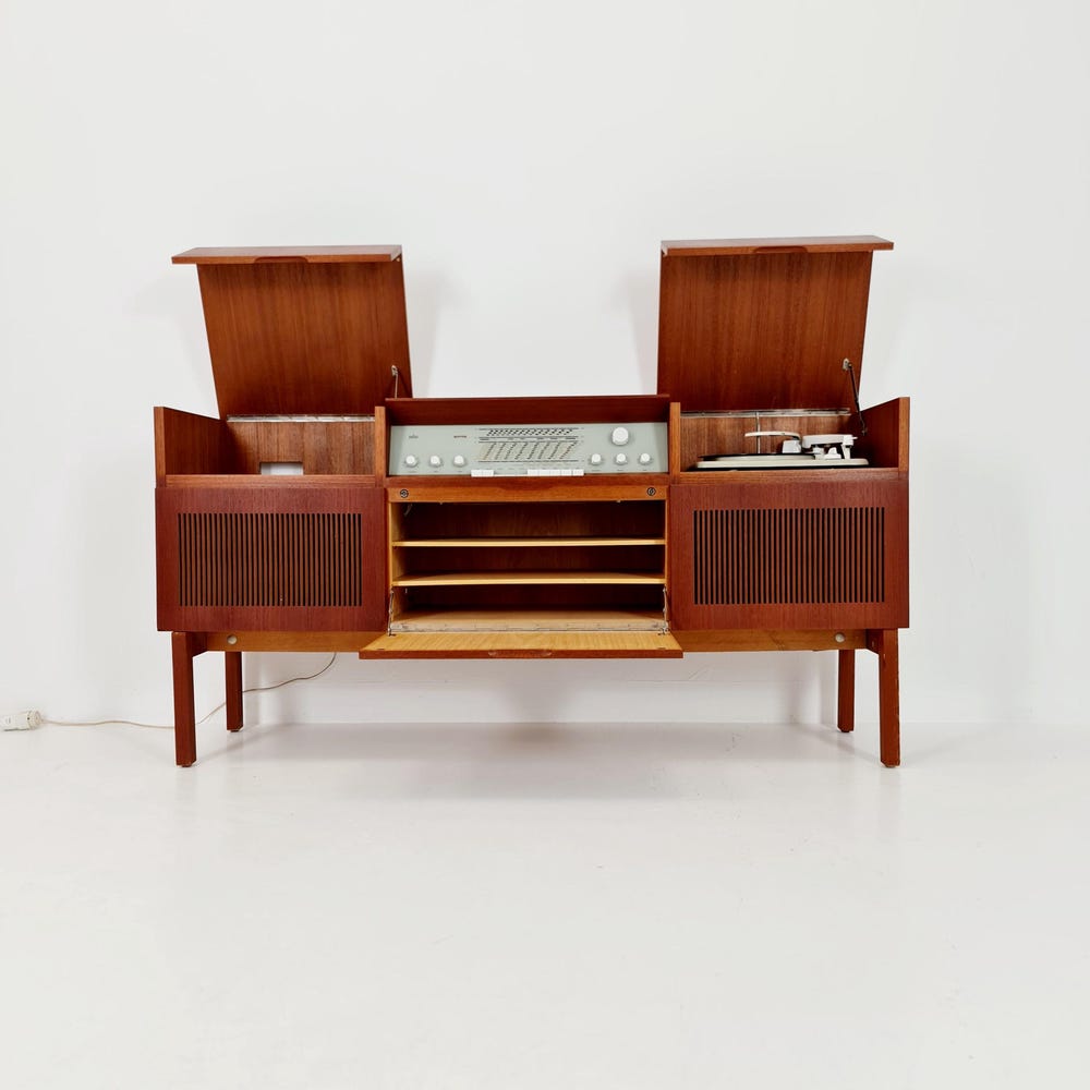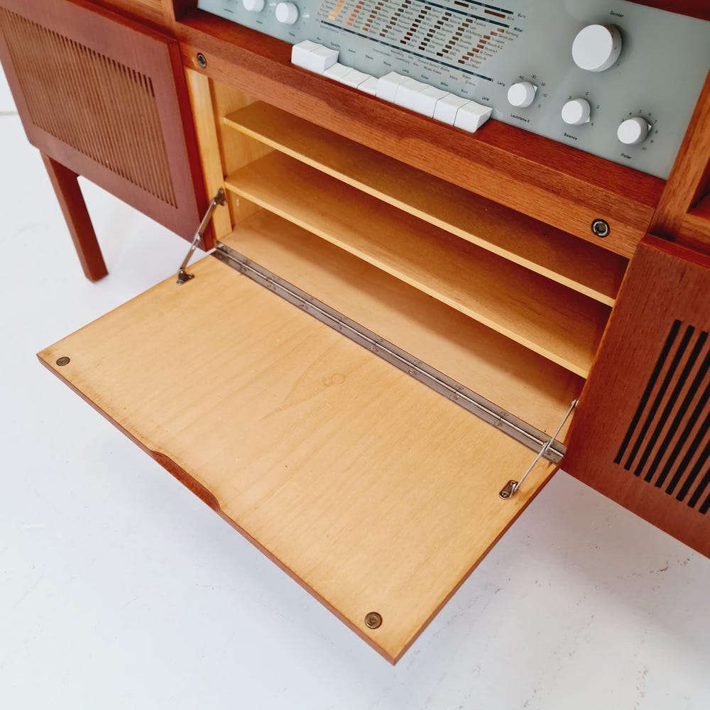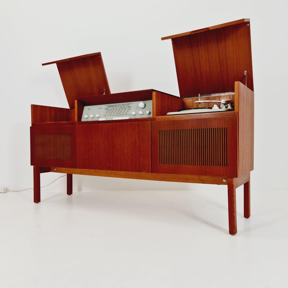 Mid Century Modern German Teak record player, radio by Braun “R 32”, 1960s