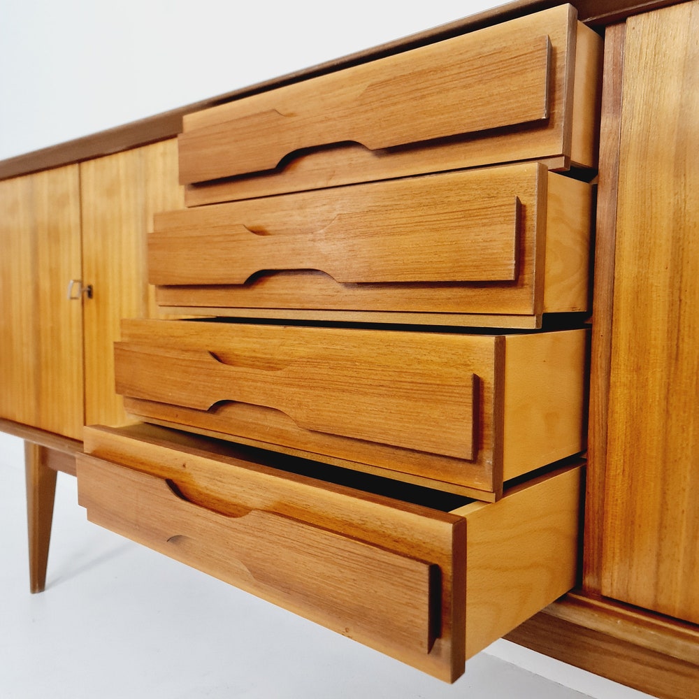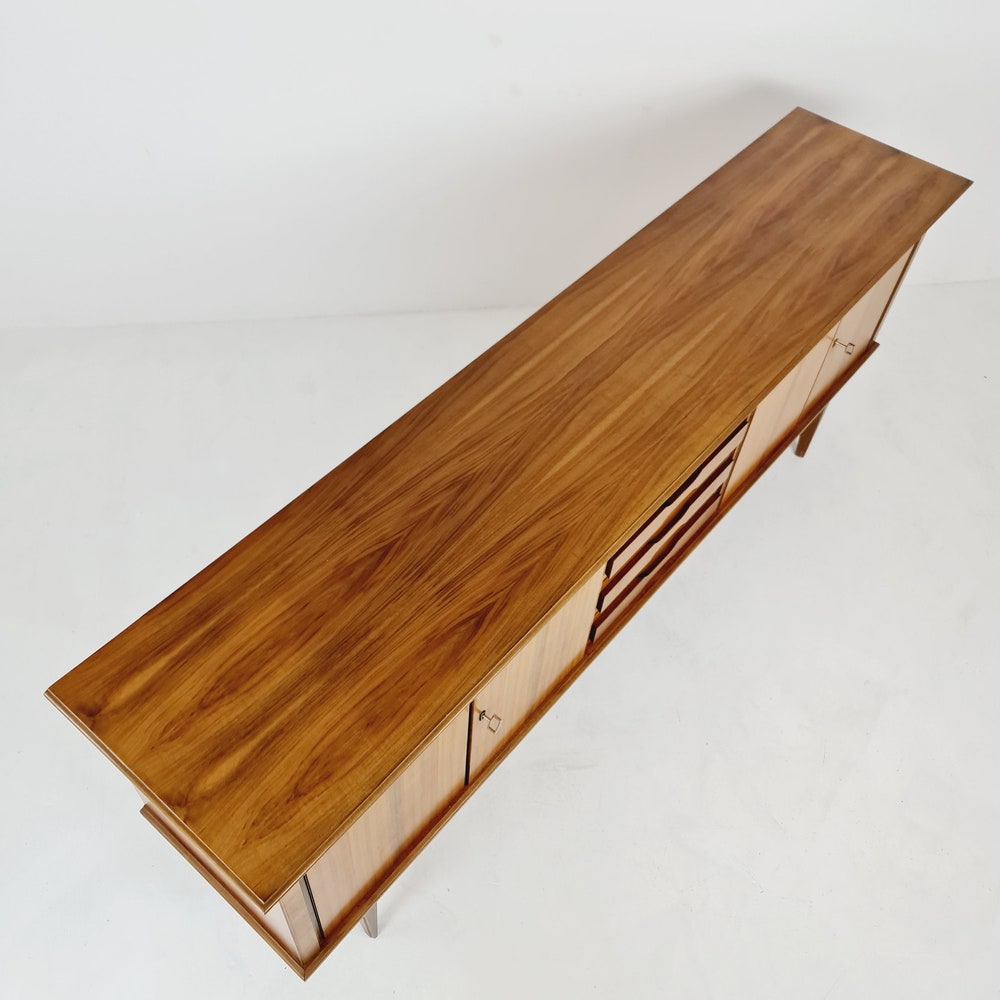 Mid Century Modern German walnut sideboard, 1960s Design year: 1960s Dimensions:47D x 220W x 86H It is in good vintage condition, however, as with all vintage items some minor wear marks should be expected. Please enquire for prices in your country before buying. A wooden crate may be used for intercontinental shipments for maximum protection. […]