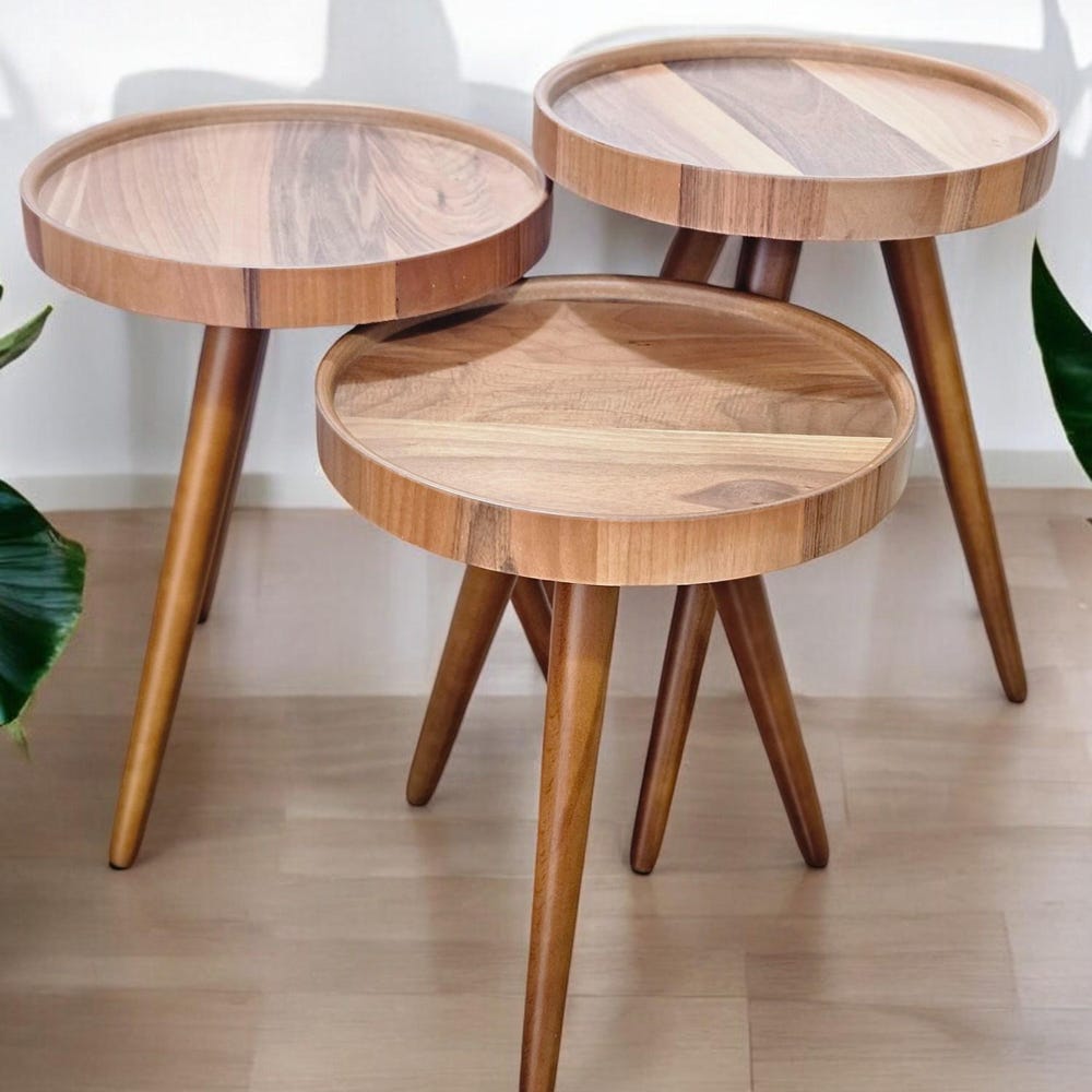 Mid Century Modern Nesting Coffee Tables Set of 3 – Handmade Wooden Side Tables for Living Room & Housewarming Gift
