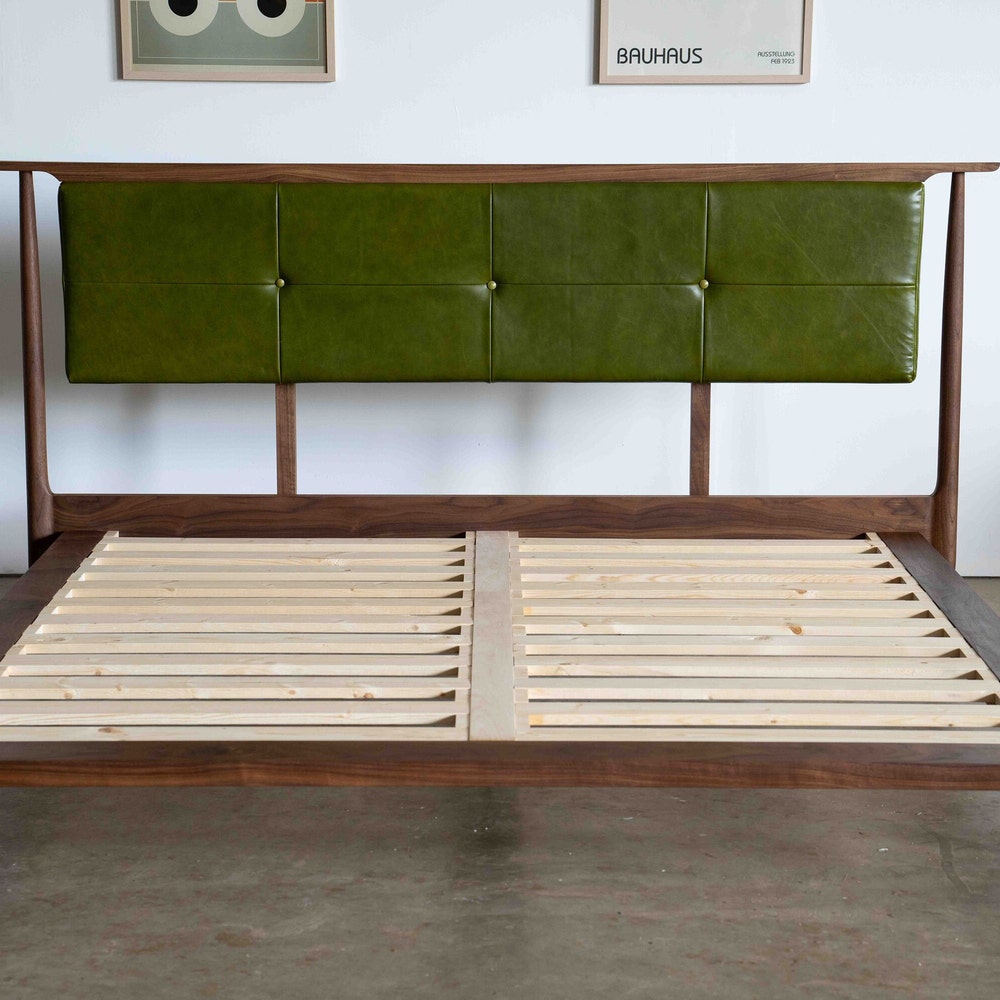 Mid Century Modern Platform Bed Frame Storage Optional / Leather Upholstered Headboard
