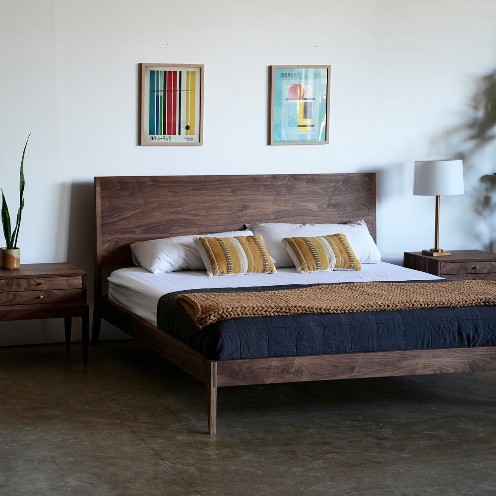 Mid Century Modern Platform Bed in Walnut / Platform Storage Bed Frame King / Queen Solid Wood platform Bed Storage Optional