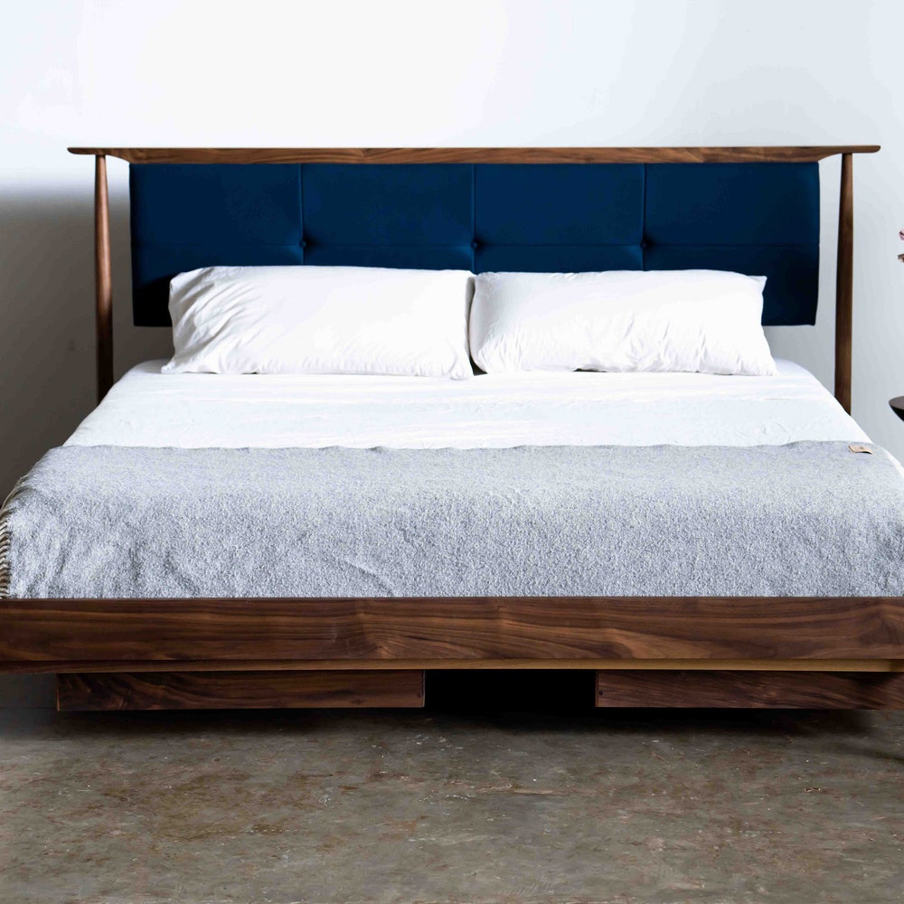 Mid Century Modern Platform Storage Bed | King Size Solid Wood upholstered headboard bed frame | Queen Full Twin | Bed No. 3