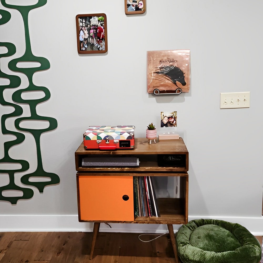 Mid Century Modern Record Console, Turntable Stand, Retro Vinyl Stand