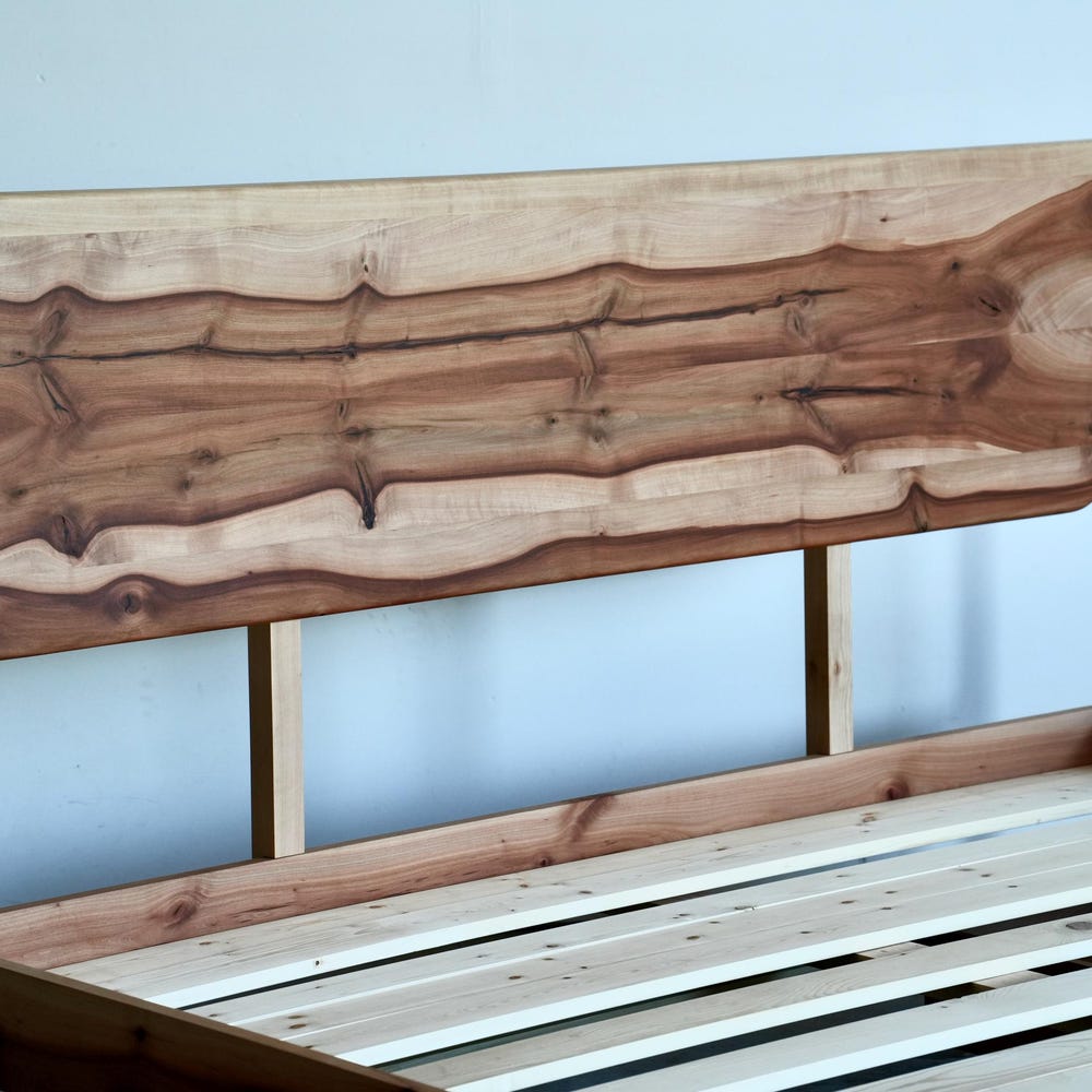 Our goal with this bed has been, first and foremost, to construct a piece of furniture that will last well over 50 years without issue. Quality of material and construction is our focus. I hope you like the design and find the proportions pleasing, but we strive primarily to surpass your expectations in regard to quality. A key advantage of purchasing from a smaller scale shop is that we can justify losing our minds on details such as grain orientation and joinery reinforcement. Please enjoy for many, many years to come.