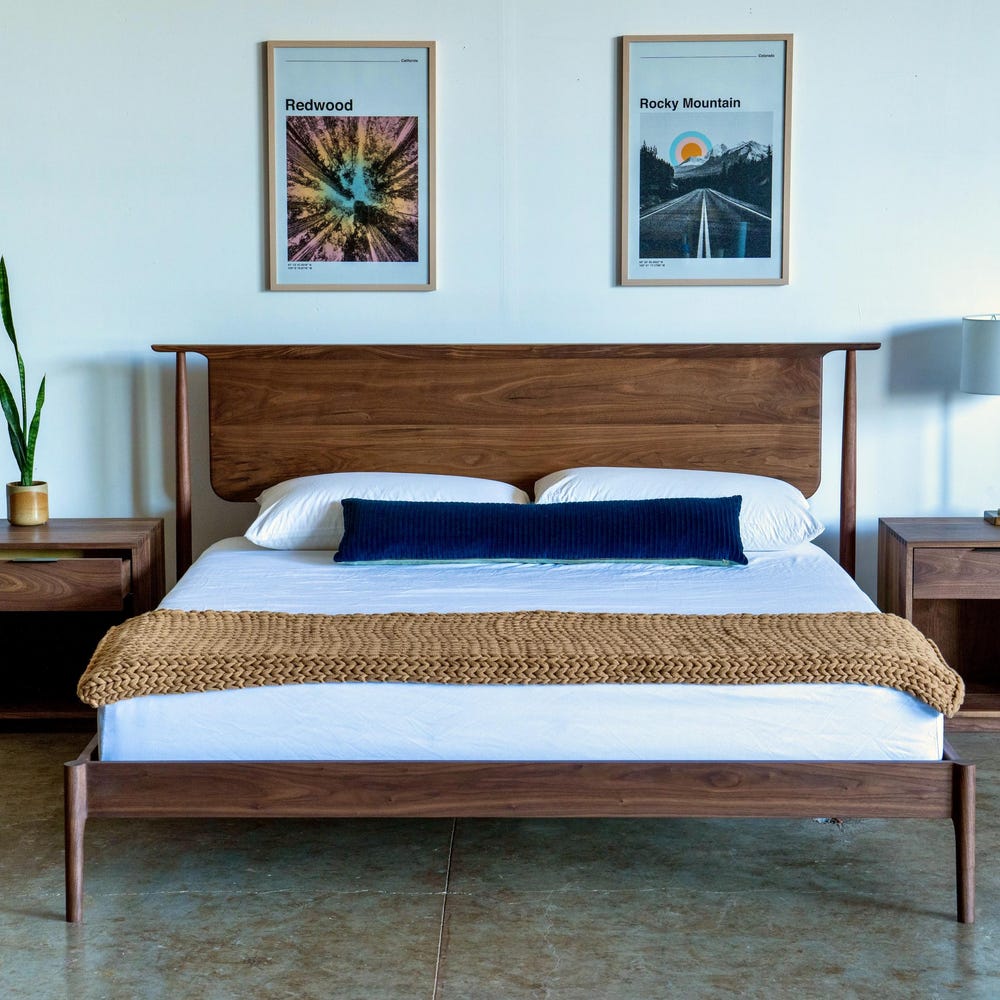 Mid Century Modern Solid Wood Bed Frame With Storage Optional / Madrone Walnut Maple White Oak Platform Bed