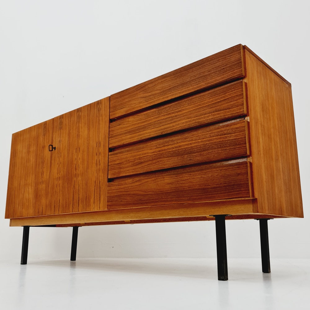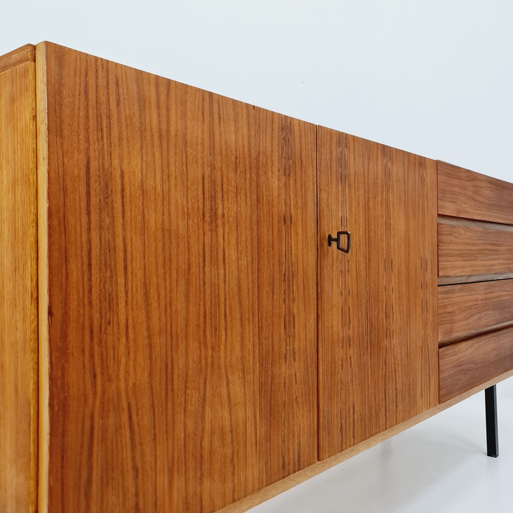 Mid Century Modern Teak Sideboard, 1960s by : Rudolf Hammerbacher Möbelfabrik Design year: 1960s Dimensions: 44D x 157W x 78H cm It is in good vintage condition, however, as with all vintage items some minor wear marks should be expected. Please inquiry for prices to your country before buying. A wooden crate may be used […]