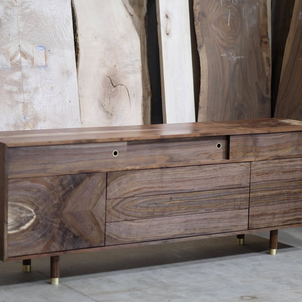 PLEASE READ DESCRIPTION AND CONTACT ME BEFORE PURCHASE – ALL PIECES BUILT TO ORDER www.beautyandbreadwoodshop.com This is a piece that truly speaks for itself. The fully grain matched solid wood walnut facade brings warmth and depth to this otherwise very simple silhouette. The custom made brass feet and drawer pulls on the sliding doors compliment […]