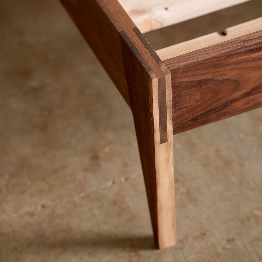 Our goal with this bed has been, first and foremost, to construct a piece of furniture that will last well over 50 years without issue. Quality of material and construction is our focus. I hope you like the design and find the proportions pleasing, but we strive primarily to surpass your expectations in regard to quality. A key advantage of purchasing from a smaller scale shop is that we can justify losing our minds on details such as grain orientation and joinery reinforcement. Please enjoy for many, many years to come.
