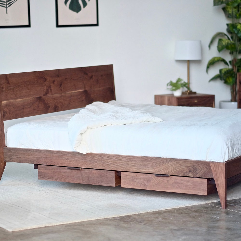 Mid Century Modern Walnut Platform Bed / Solid Walnut Storage Bed Option / Hardwood Bed Frame Handmade In Walnut