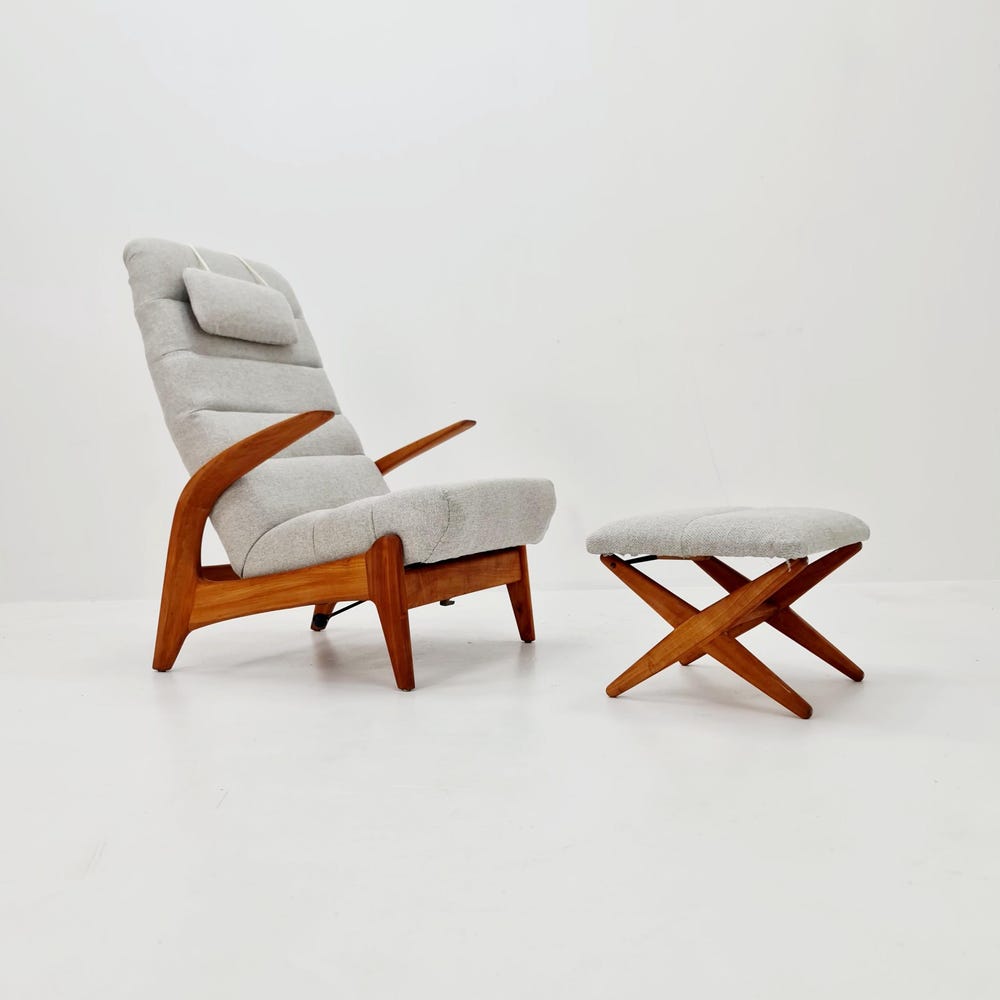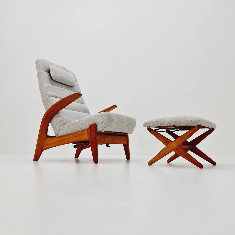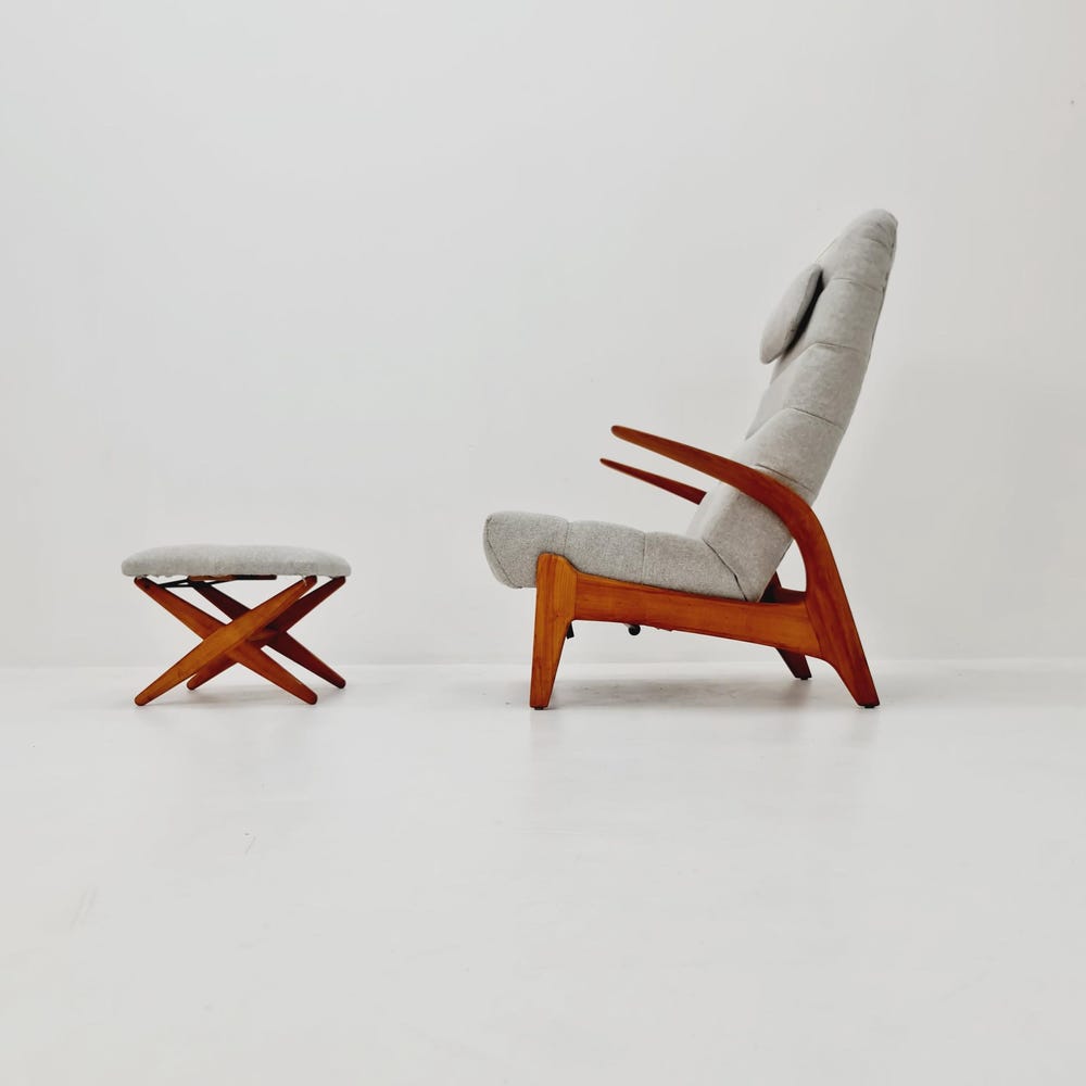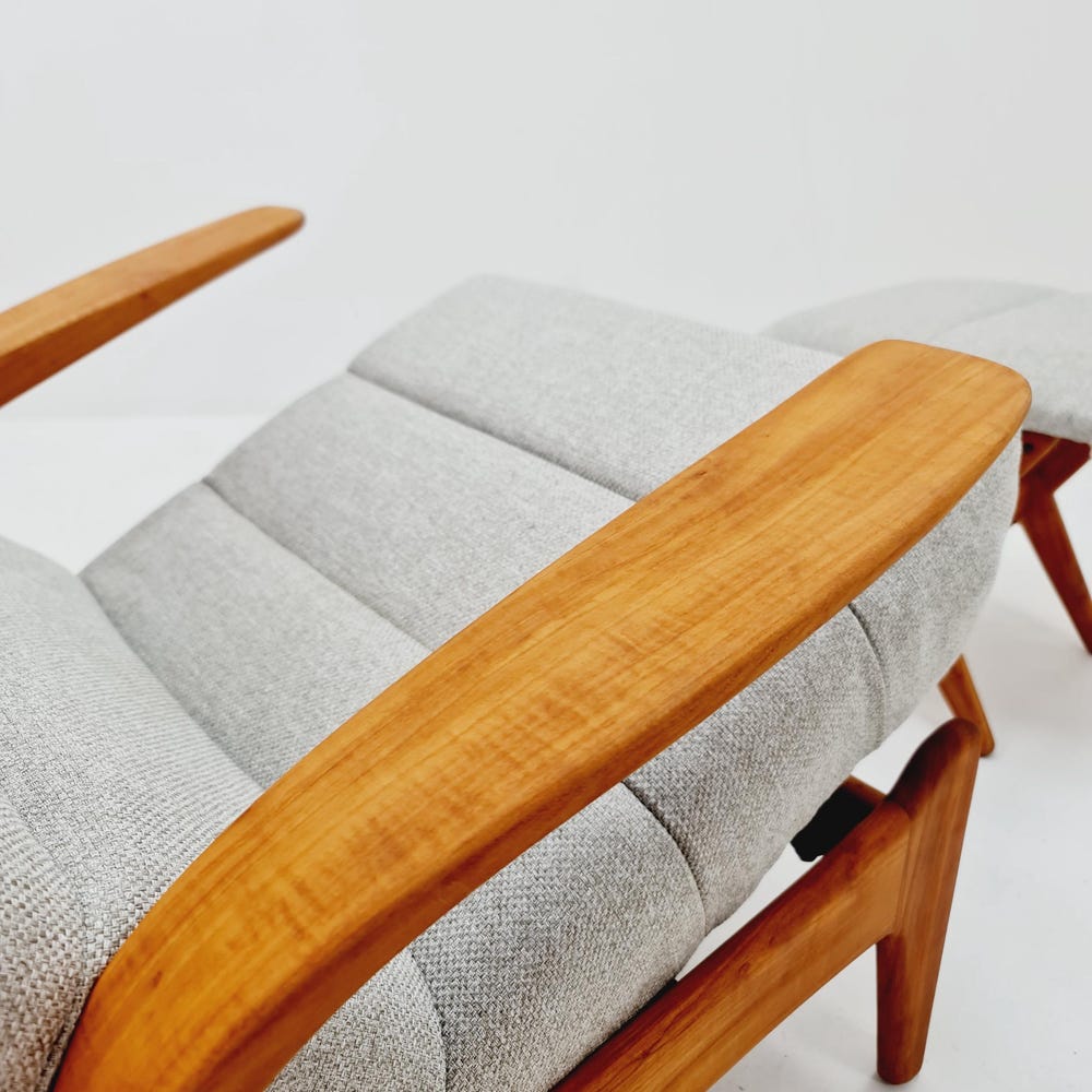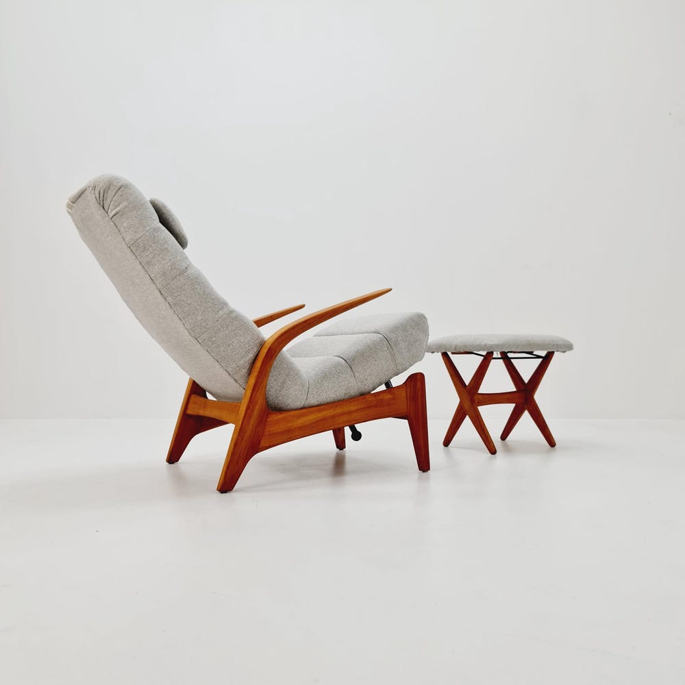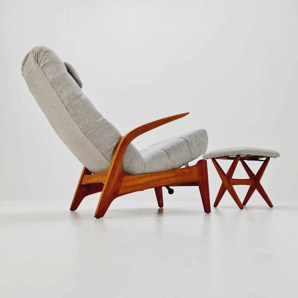 Mid Century Solid cherry wood lounge chair/ Easy chair by Rolf Rastad & Adolf Relling For Goldfeder with Adjustable Ottoman, 1960s