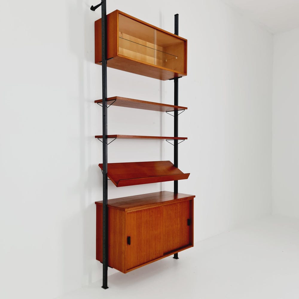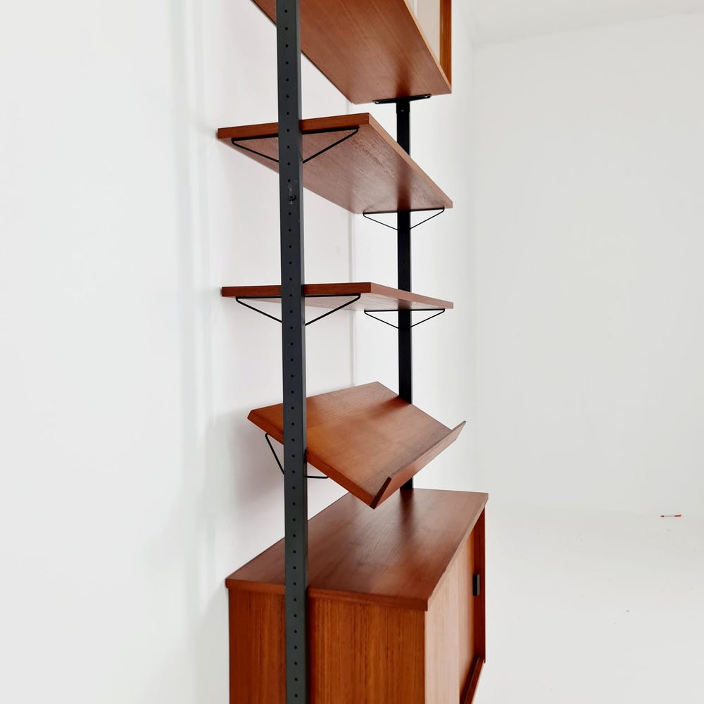 Mid century String shelf system teak & metal by Olof Pira Sweden, 1950s